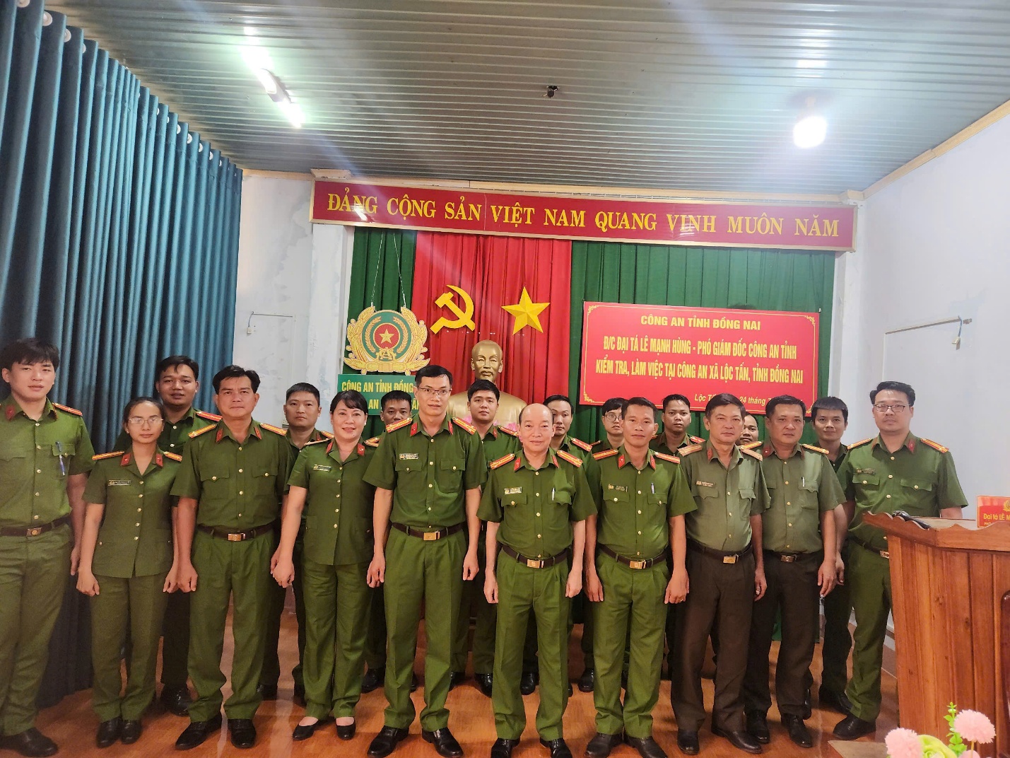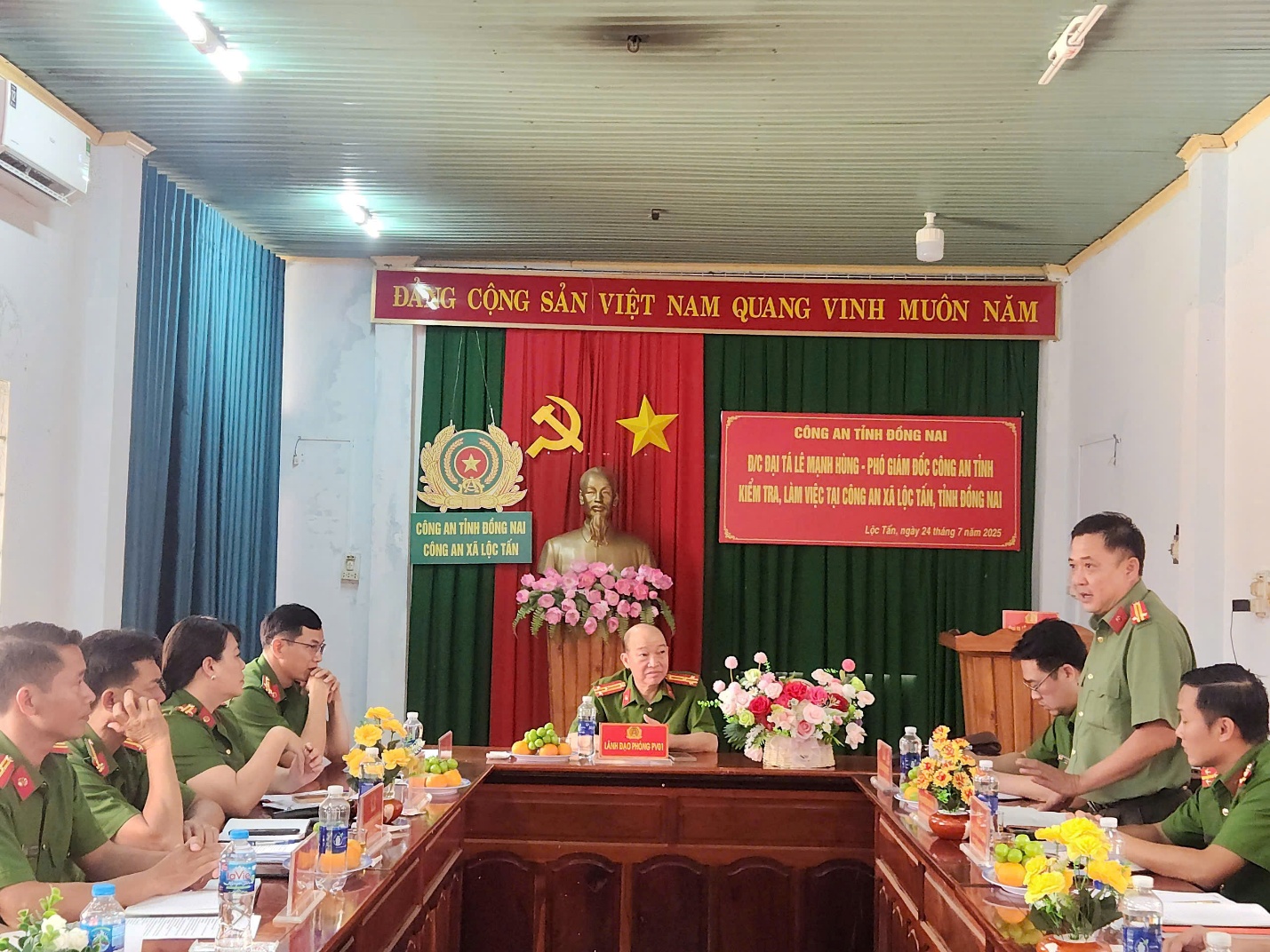 Ngày 24/7/2024, Đồng chí Thượng tá Huỳnh Yên Nam – Phó trưởng phòng PV01 thừa ủy quyền của đồng chí Đại tá Lê Mạnh Hùng - Phó Giám đốc Công an tỉnh Đồng Nai cùng đoàn công tác của Công an tỉnh đã đến thăm, làm việc với Công an xã Lộc Tấn. Đây là đơn vị Công an cấp xã mới thành lập từ ngày 01/7/2025 trên cơ sở sáp nhập Công an xã Lộc Tấn, Công an xã Lộc Thiện thuộc huyện Lộc Ninh, tỉnh Bình Phước trước khi sắp xếp đơn vị hành chính cấp xã.