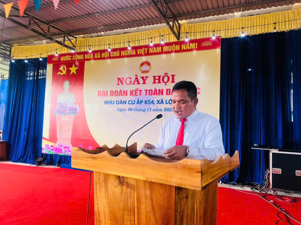 Phát biểu chỉ đạo tại Ngày hội, Đồng chí Điểu Khim - Phó bí thư thường trực Đảng ủy biểu dương những nỗ lực và kết quả mà tập thể ấp K54 đã đạt được trong năm qua, đồng thời mong muốn trong thời gian tới, toàn thể cán bộ, đảng viên và nhân dân trong ấp tiếp tục đoàn kết, đồng tâm, hiệp lực thực hiện tốt các phong trào thi đua, góp phần xây dựng khu dân cư ngày càng văn minh, giàu đẹp.