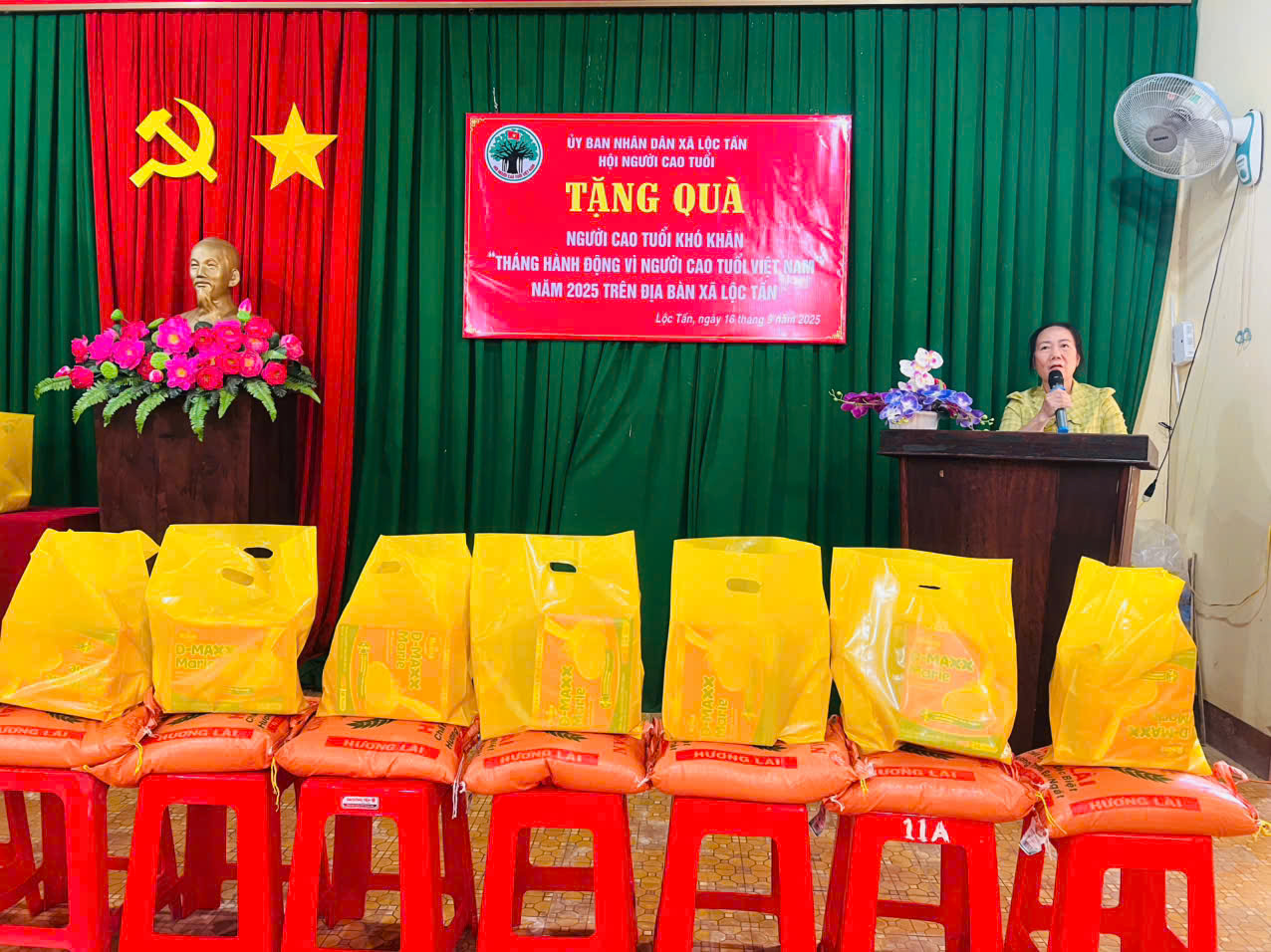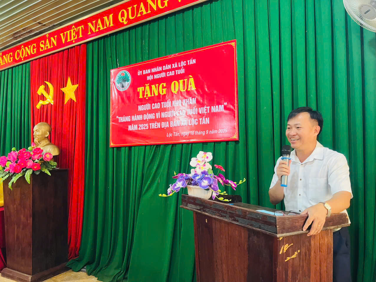 Ngày 16/9/2025, xã Lộc Tấn đã diễn ra buổi trao quà cho người cao tuổi có hoàn cảnh khó khăn, nằm trong chuỗi hoạt động hưởng ứng “Tháng hành động vì Người cao tuổi Việt Nam” năm 2025.