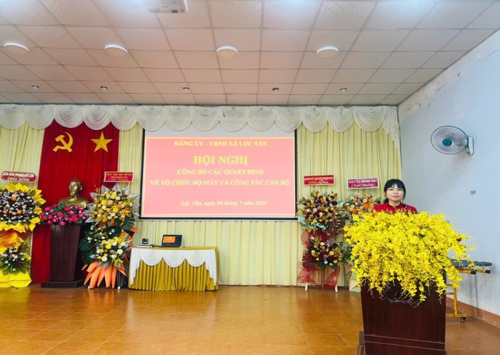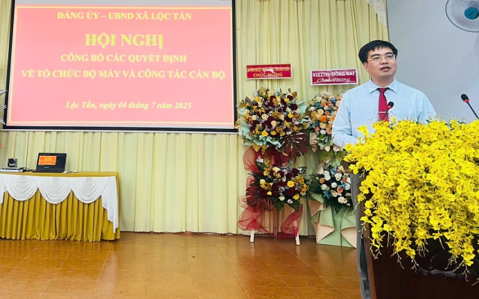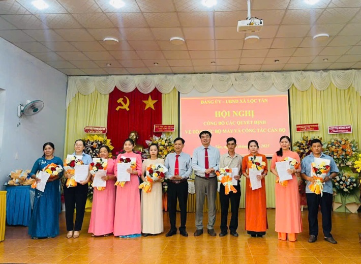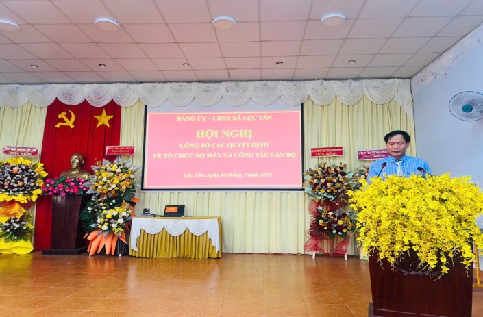 Chiều ngày 04/7/2025, tại Hội trường UBND xã, Đảng ủy – Ủy ban nhân dân xã Lộc Tấn đã tổ chức Hội nghị công bố các quyết định về tổ chức bộ máy và công tác cán bộ. Hội nghị nhằm kiện toàn tổ chức, nhân sự, góp phần nâng cao hiệu quả lãnh đạo, quản lý, đáp ứng yêu cầu nhiệm vụ trong giai đoạn mới.