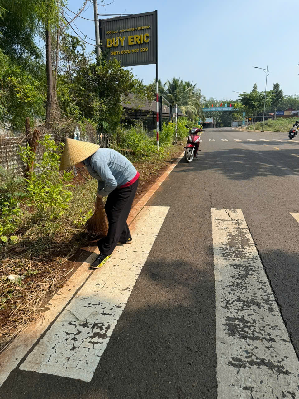 Công dân xã Lộc Tấn dọn dẹp vệ sinh đường phố kỷ niệm 51 năm Ngày Giải phóng miền Nam, thống nhất đất nước (30/4/1975 - 30/4/2026), và đón chào chủ trương xây dựng Đồng Nai trở thành thành phố trực thuộc Trung ương. Ảnh: CTV