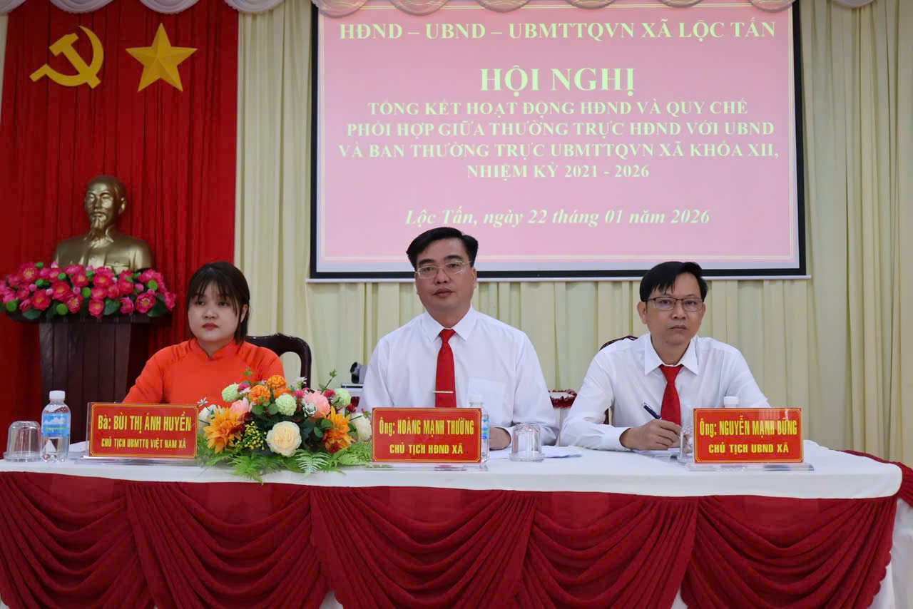 Cũng trong Hội nghị, các đại biểu cũng đã nghe báo cáo tình hình thực hiện Quy chế phối hợp hoạt động giữa Thường trực Hội đồng nhân dân với Ủy ban nhân dân và Ban Thường trực Ủy ban Mặt trận Tổ quốc Việt Nam xã Lộc Tấn khóa XII, nhiệm kỳ 2021–2026. Báo cáo cho thấy, việc thực hiện Quy chế phối hợp được duy trì nền nếp, chặt chẽ; phát huy rõ vai trò, trách nhiệm của từng cơ quan trong tổ chức kỳ họp, tiếp xúc cử tri, giải quyết ý kiến, kiến nghị của Nhân dân, góp phần nâng cao hiệu lực, hiệu quả hoạt động của chính quyền địa phương.