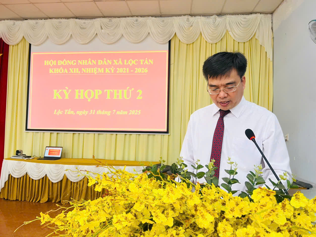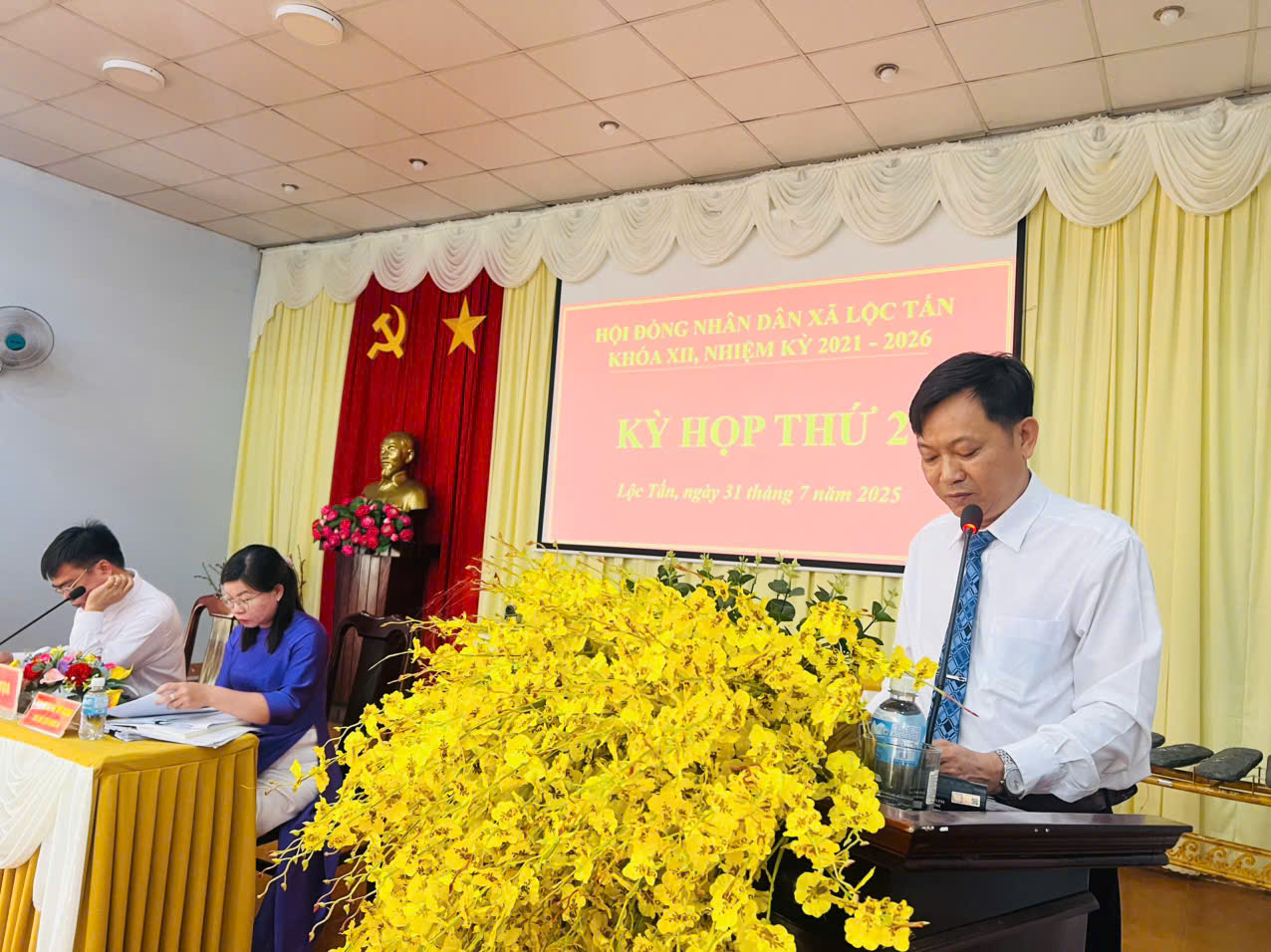 Ngày 31/7/2025, Hội đồng nhân dân xã Lộc Tấn đã long trọng tổ chức kỳ họp thứ 2, khóa XII, nhiệm kỳ 2021–2026 nhằm đánh giá tình hình thực hiện nhiệm vụ phát triển kinh tế - xã hội, quốc phòng - an ninh 6 tháng đầu năm và đề ra phương hướng, nhiệm vụ 6 tháng cuối năm 2025, đồng thời thông qua nhiều nội dung quan trọng khác.