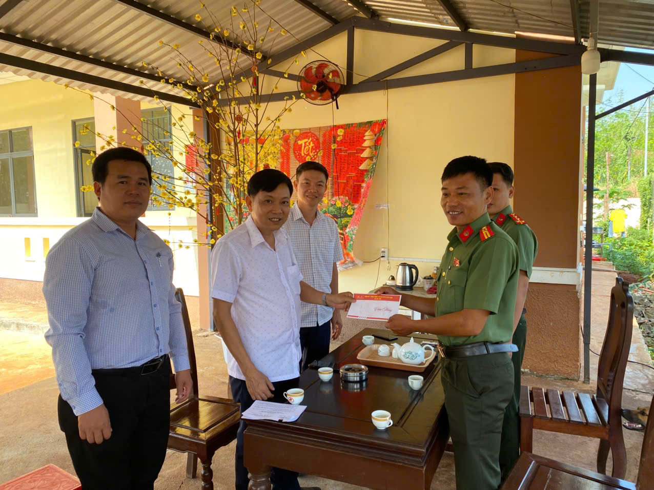 Ông Nguyễn Mạnh Dũng - Chủ tịch UBND xã thăm, tặng quà Công an xã