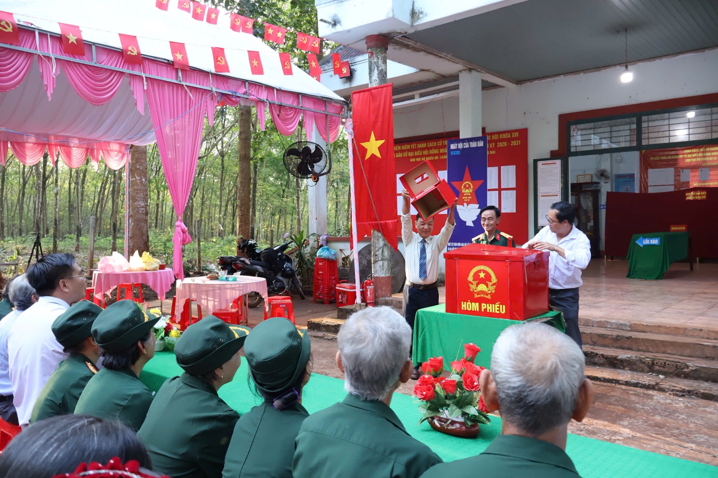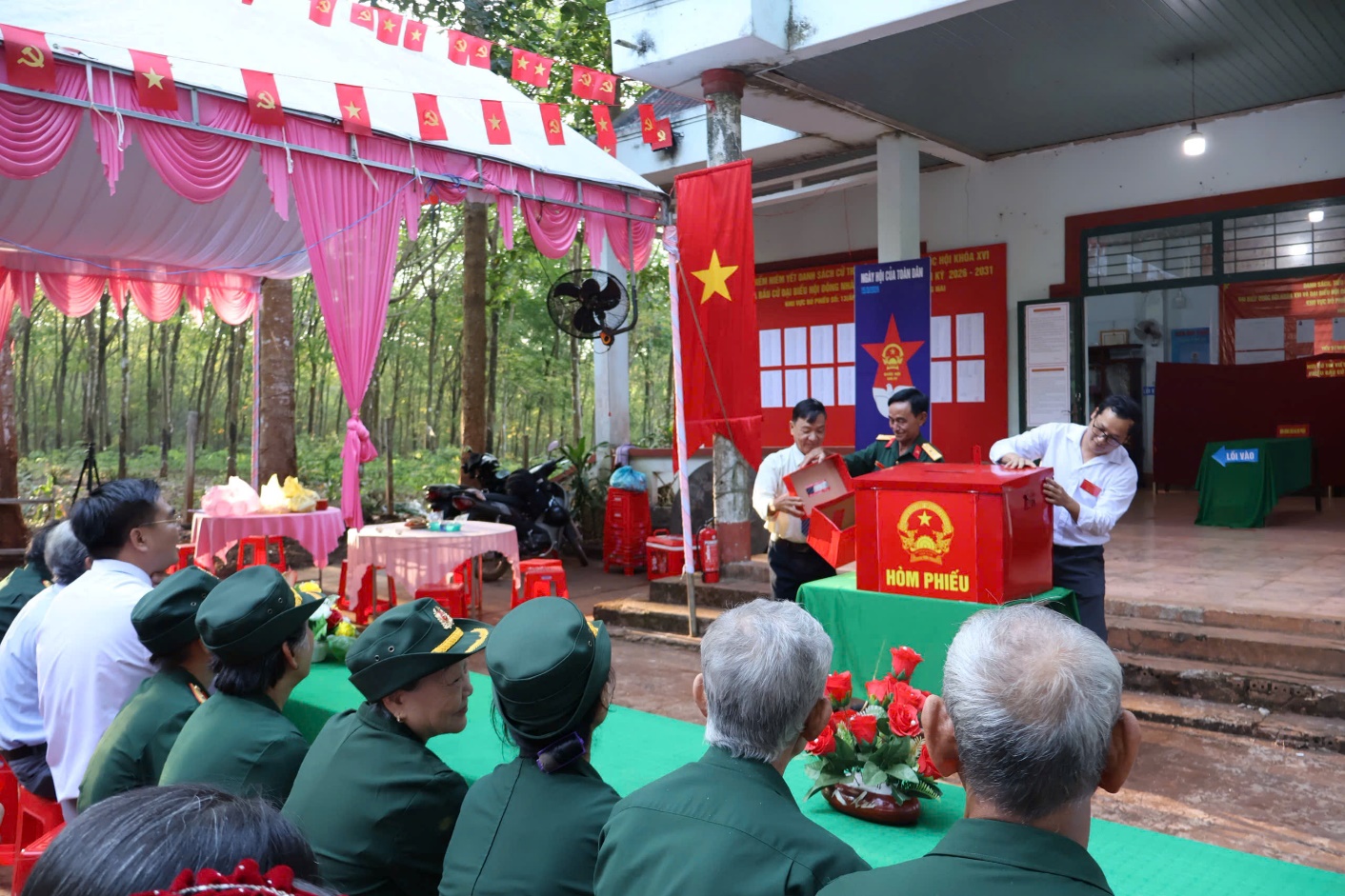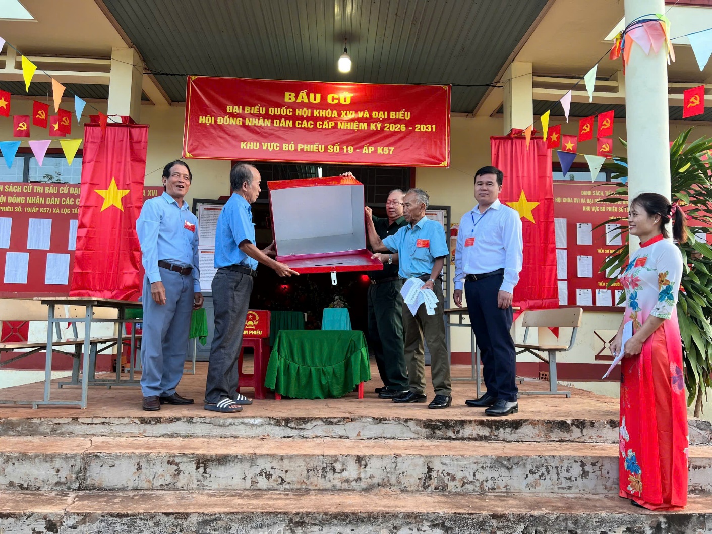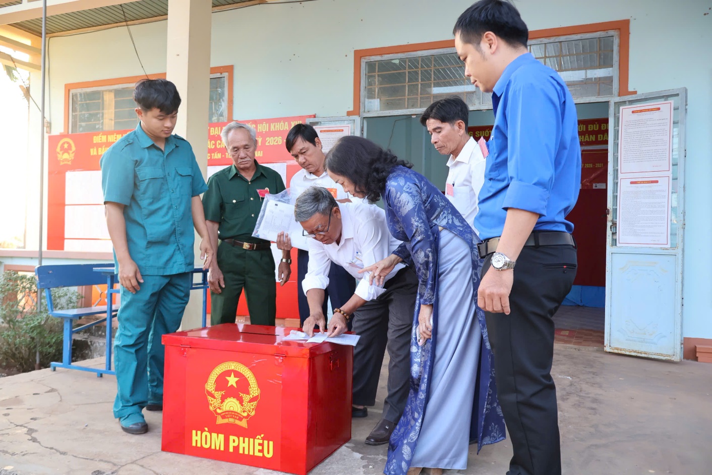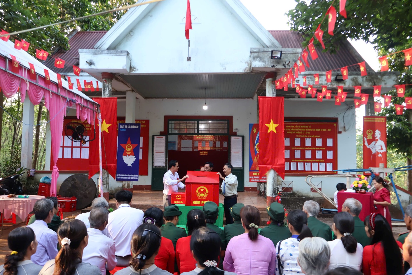 Tại các khu vực bỏ phiếu, công tác chuẩn bị được thực hiện chu đáo. Hòm phiếu, phòng bỏ phiếu, bàn hướng dẫn cử tri được bố trí khoa học; danh sách cử tri và danh sách người ứng cử được niêm yết công khai theo đúng quy định. Các thành viên Tổ bầu cử có mặt từ sớm, tận tình hướng dẫn cử tri các bước nhận phiếu, ghi phiếu và bỏ phiếu, đảm bảo quá trình bầu cử diễn ra thuận lợi, trật tự và đúng quy định.