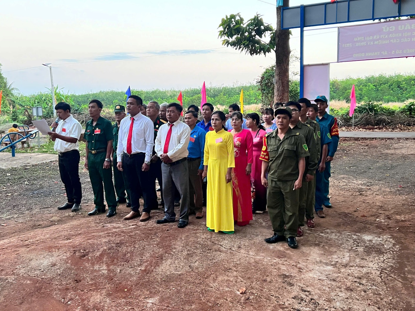 Lễ khai mạc tại tổ bầu cử số 17, ấp 5B, xã Lộc Tấn. Ảnh: Thúy Anh