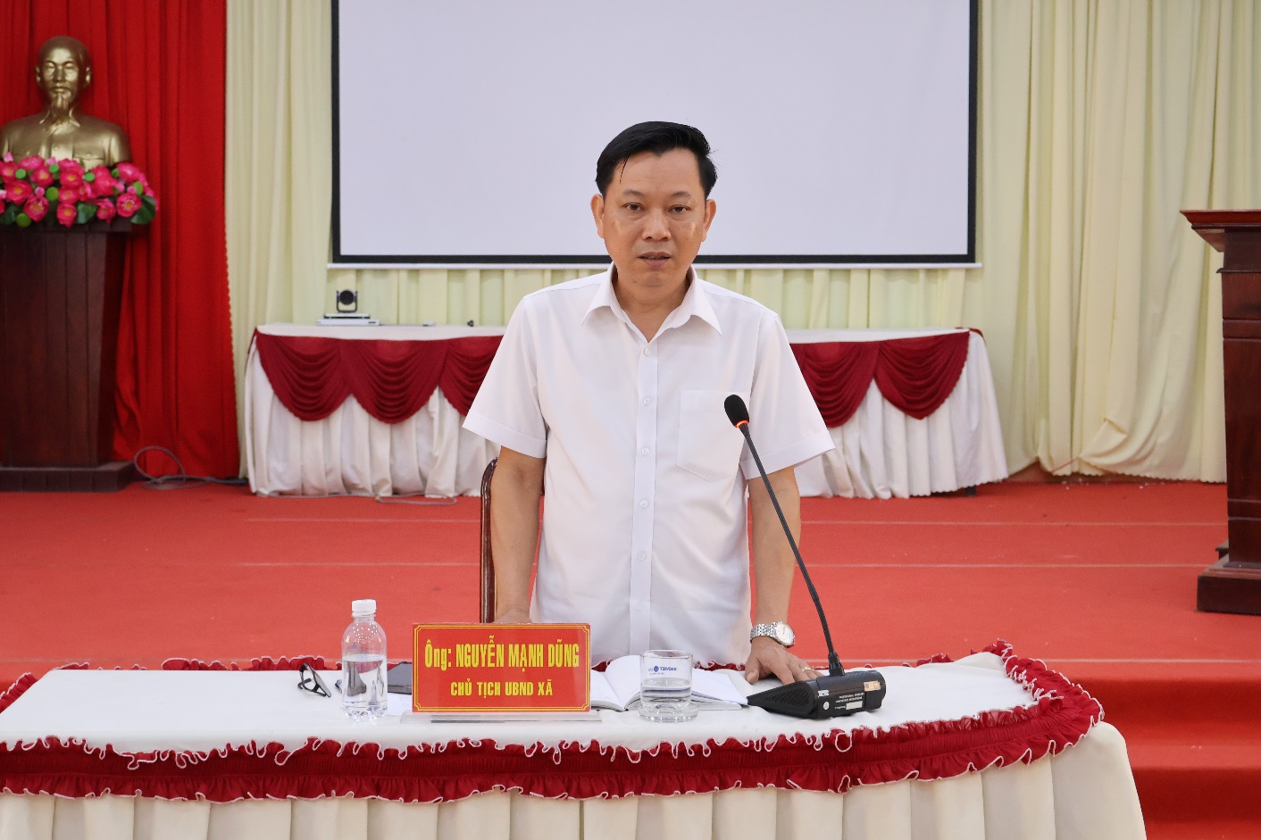 Ông Nguyễn Mạnh Dũng, Chủ tịch UBND xã - Chủ trì buổi làm việc. Ảnh: Thúy Anh