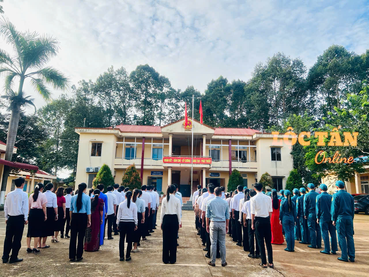 Khung cảnh trang nghiêm của buổi lễ chào cờ đầu tháng 11 tại UBND xã Lộc Tấn