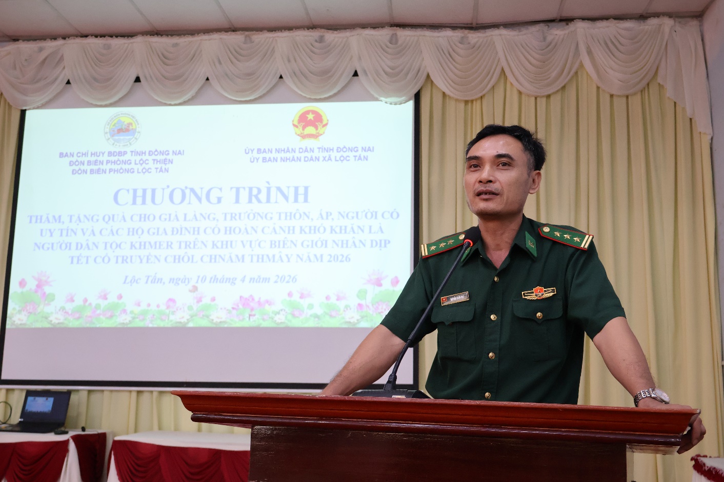 Sáng ngày 10/4/2026, UBND xã Lộc Tấn phối hợp với Đồn Biên phòng Lộc Tấn và Đồn Biên phòng Lộc Thiện tổ chức chương trình thăm, chúc Tết và trao quà cho già làng, trưởng thôn, ấp, người có uy tín và các hộ gia đình có hoàn cảnh khó khăn là đồng bào dân tộc Khmer trên địa bàn.