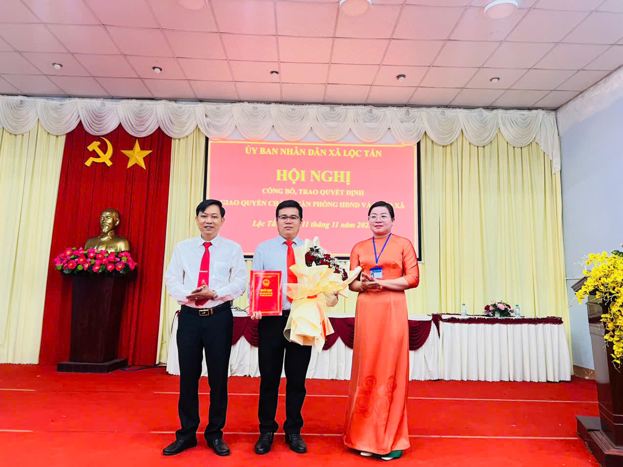 Chiều ngày 11/11/2025, Ủy ban nhân dân xã Lộc Tấn tổ chức Hội nghị trao Quyết định cho ông Hoàng Đại Đình - Phó Chánh Văn phòng giữ chức vụ Quyền Chánh Văn phòng HĐND và UBND xã Lộc Tấn.