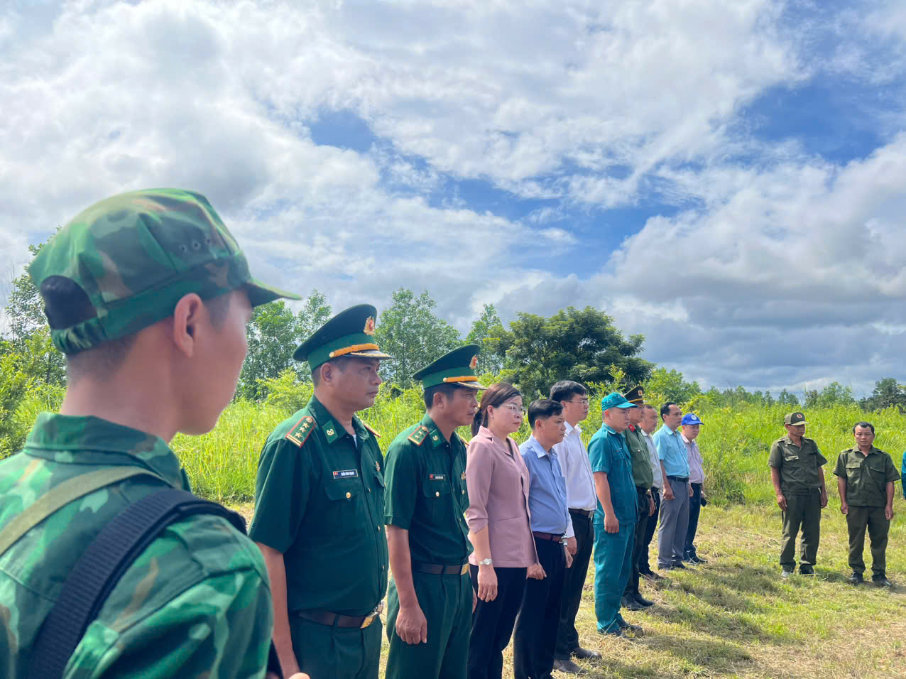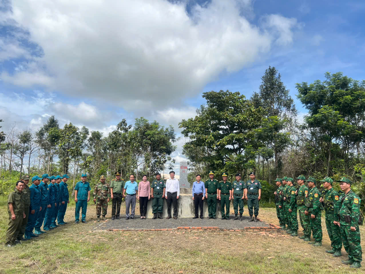 Trong hành trình, Đoàn cũng phối hợp với Đồn Biên phòng Lộc Tấn tổ chức nghi thức chào cột mốc số 75 trên địa bàn xã, khẳng định quyết tâm bảo vệ vững chắc chủ quyền lãnh thổ, an ninh biên giới quốc gia.