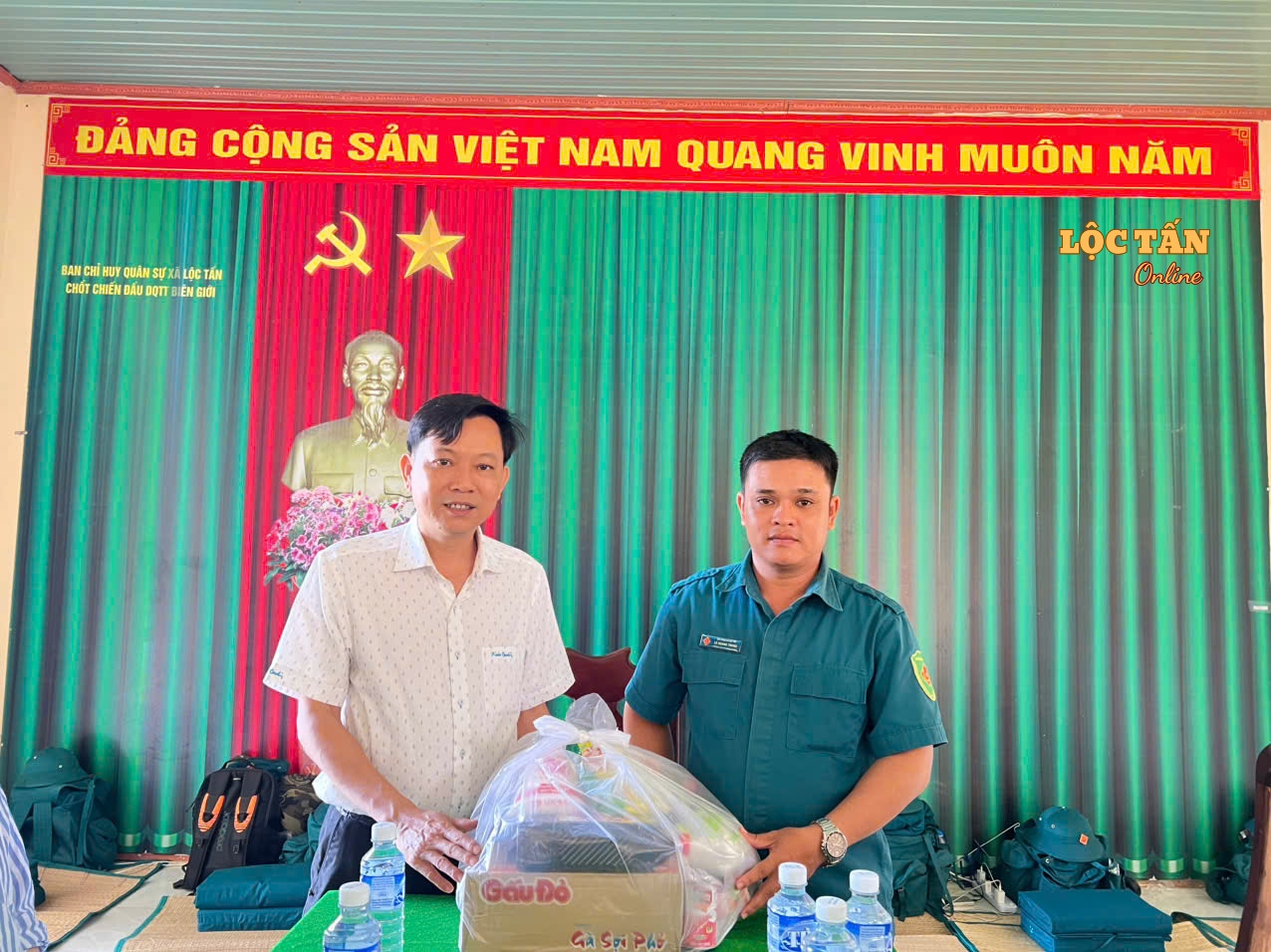 Sáng ngày 13/12/2025, ông Nguyễn Mạnh Dũng - Chủ tịch Ủy ban nhân dân xã Lộc Tấn đã đến thăm, tặng quà và động viên chiến sỹ làm nhiệm vụ tại các chốt dân quân thường trực biên giới trên địa bàn xã.