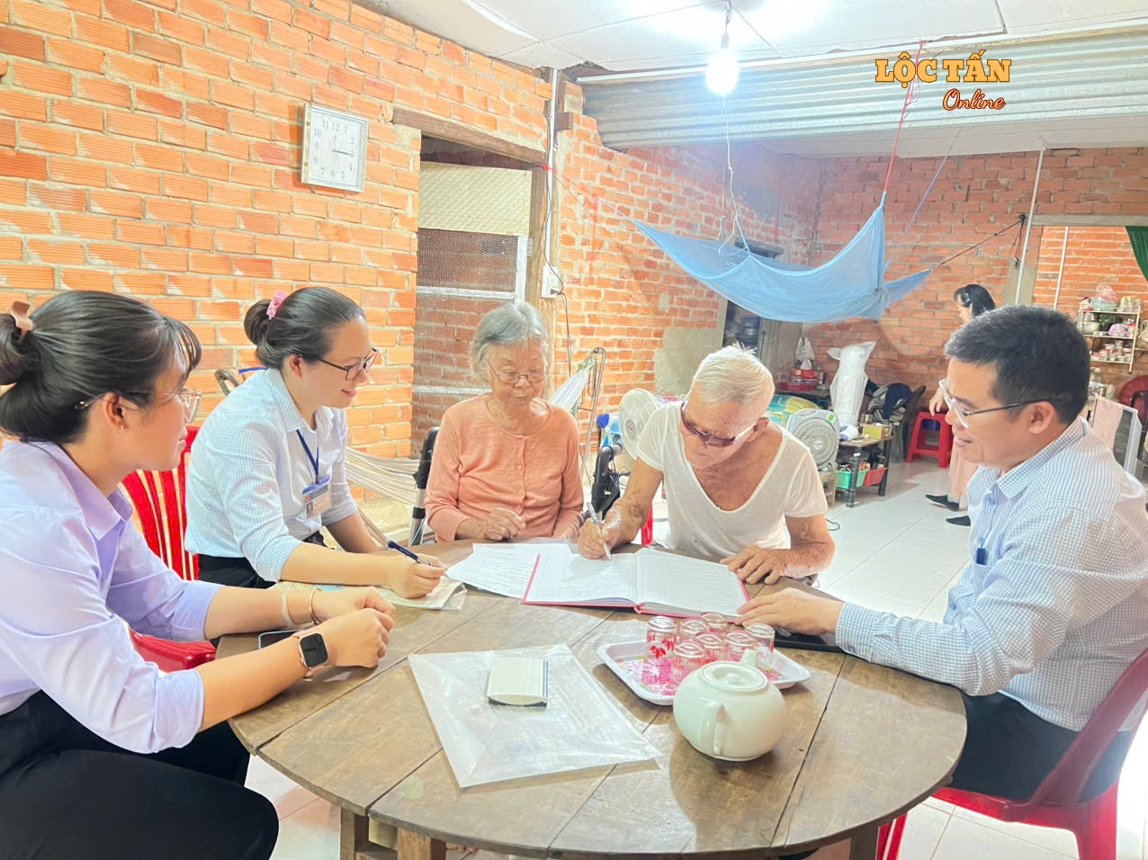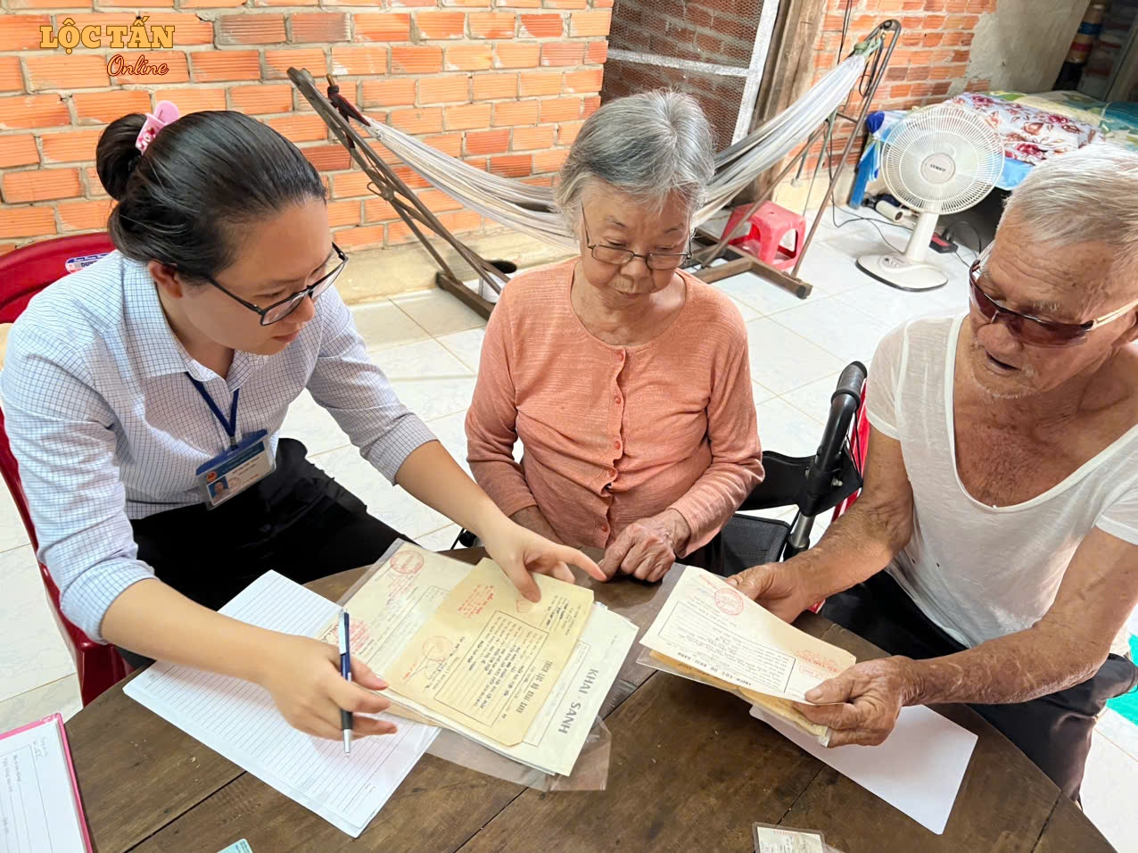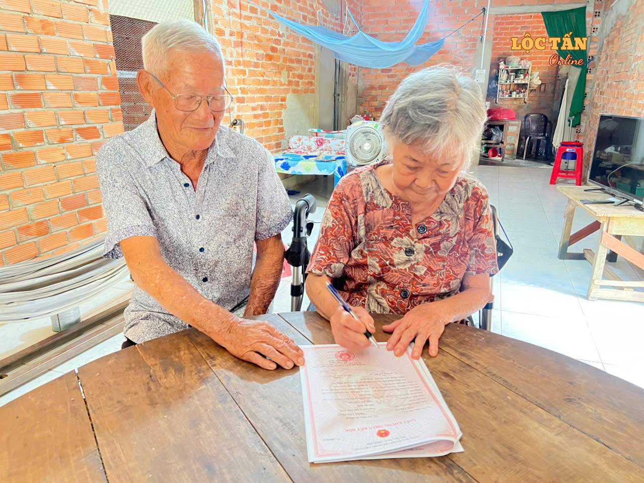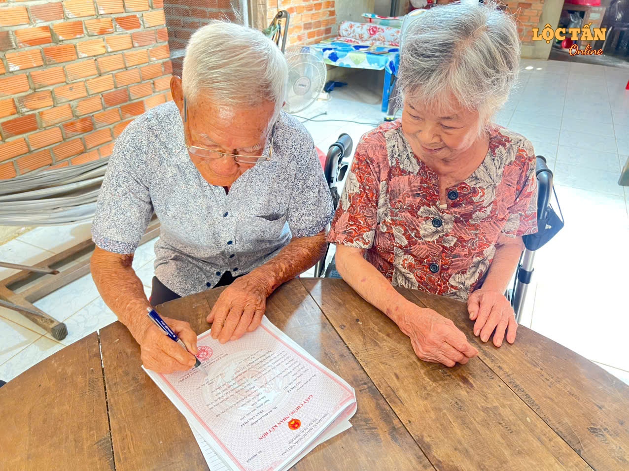 Thực hiện mô hình “Chính quyền thân thiện, vì Nhân dân phục vụ”, gắn với công tác cải cách hành chính và nâng cao chất lượng phục vụ Nhân dân, vừa qua, Ủy ban nhân dân xã Lộc Tấn đã tổ chức đến tận nhà công dân để hỗ trợ thực hiện thủ tục hành chính và trao Quyết định đăng ký kết hôn cho cặp vợ chồng cao tuổi không có khả năng đi lại.