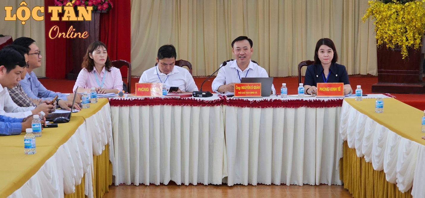 Tham dự và chủ trì cuộc họp có: Ông Nguyễn Sĩ Quân – Phó Chủ tịch UBND xã Lộc Tấn, Chủ trì cuộc họp; Ông Nguyễn Trung Thông – Phó phòng Văn hoá – Xã hội xã Lộc Tấn; Bà Đỗ Hải Yến – Chuyên viên Phòng Kinh tế đại diện phòng Kinh Tế xã Lộc Tấn ; Bà Hoàng Thị Vân Anh- Chuyên viên Phòng Văn hoá- Xã hội xã Lộc Tấn.