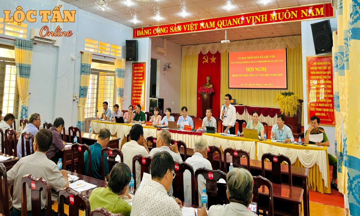 Chiều ngày 05 tháng 11 năm 2025, Ủy ban nhân dân xã Lộc Tấn phối hợp với Ban Chỉ đạo phong trào “Toàn dân đoàn kết xây dựng đời sống văn hóa” xã tổ chức Hội nghị bình xét Khu dân cư văn hóa năm 2025.