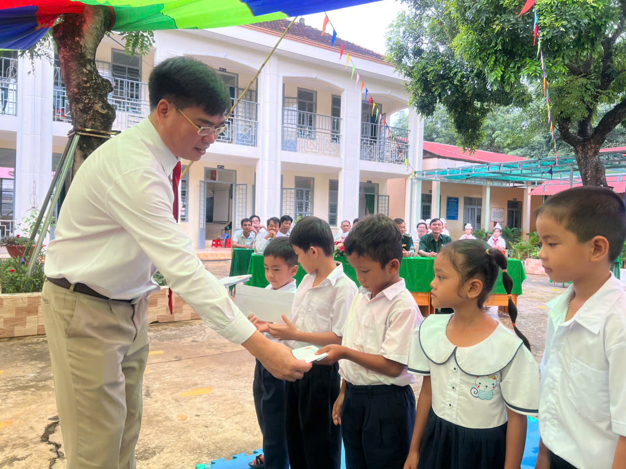 Tại các điểm trường, đại diện Đảng ủy, HĐND, UBND, UBMTTQ Việt Nam xã đã đến dự, tặng hoa, gửi lời chúc mừng đến tập thể cán bộ, giáo viên, nhân viên và học sinh. Tại buổi lễ, lãnh đạo xã ghi nhận những nỗ lực, thành tích mà các nhà trường đạt được trong năm học qua, đồng thời nhấn mạnh chính quyền địa phương sẽ tiếp tục quan tâm, đồng hành cùng sự nghiệp giáo dục, tạo điều kiện thuận lợi để chất lượng dạy và học ngày càng được nâng cao.