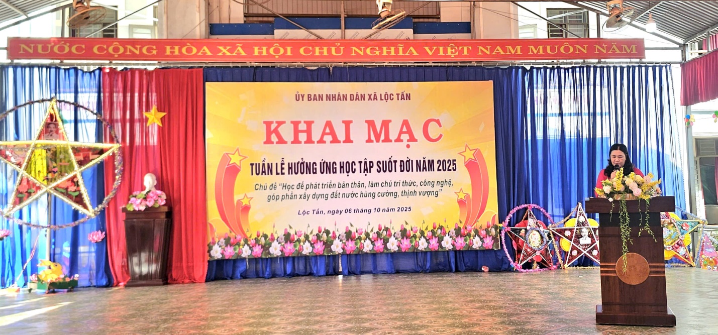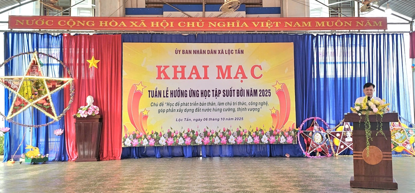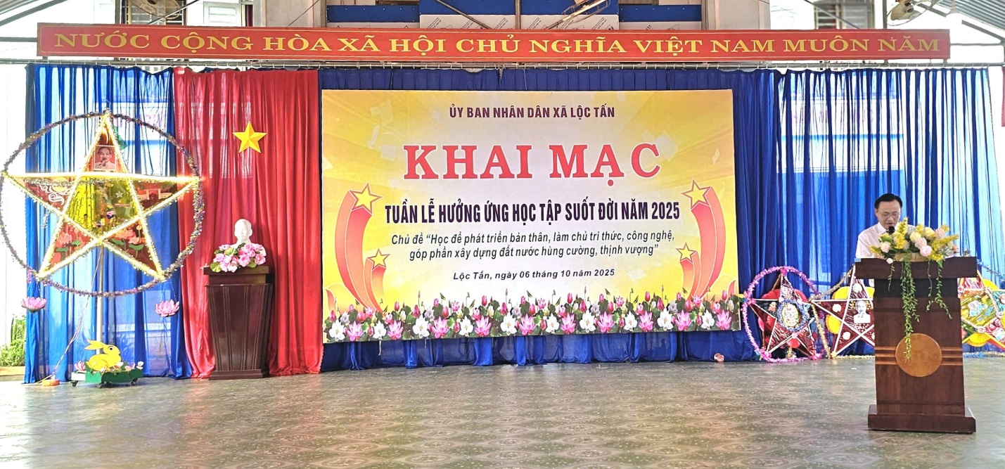 Sáng 06/10/2025, tại Trường THCS Lộc Tấn, UBND xã tổ chức Lễ khai mạc Tuần lễ hưởng ứng học tập suốt đời năm 2025 với chủ đề: “Học để phát triển bản thân, làm chủ tri thức, công nghệ, góp phần xây dựng đất nước hùng cường, thịnh vượng”.