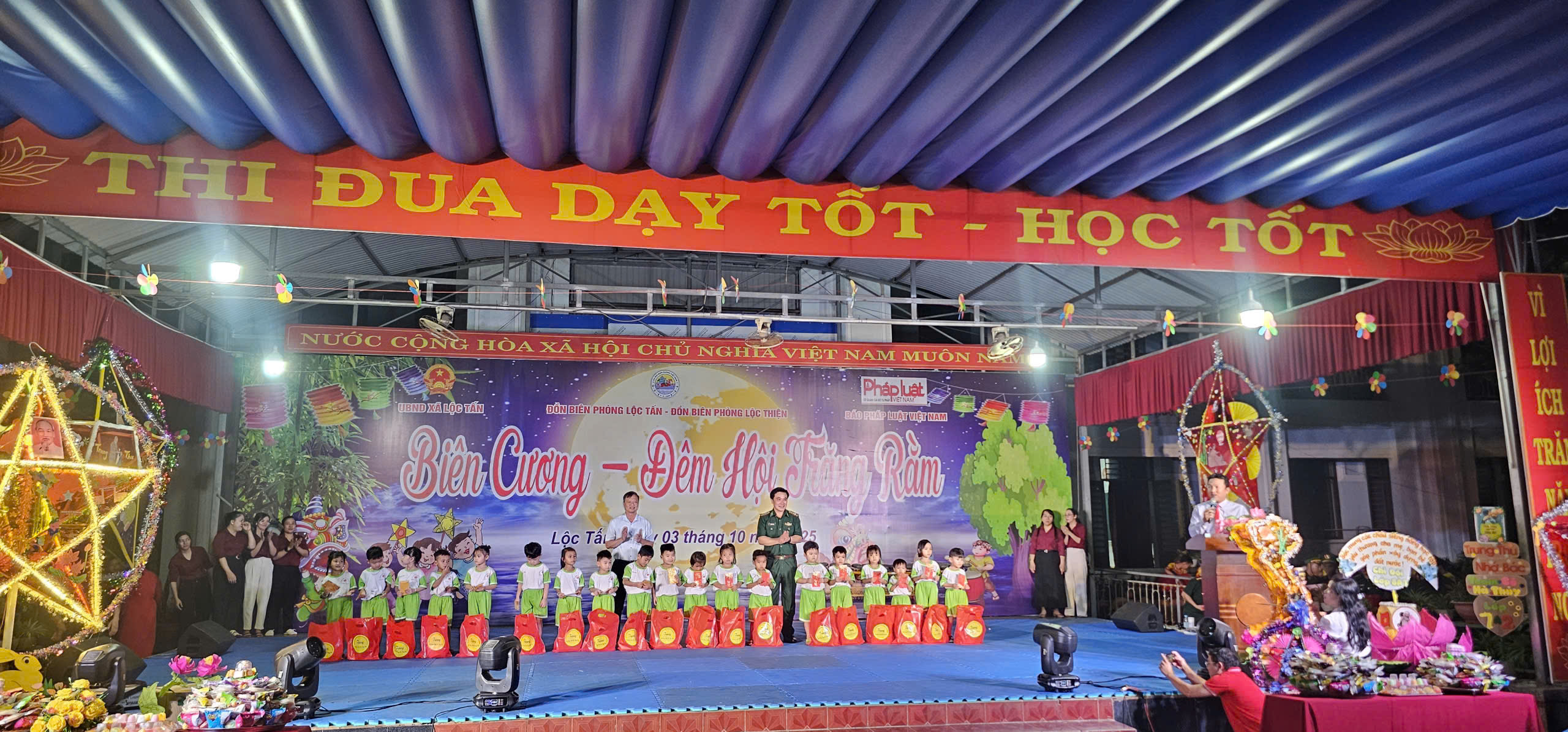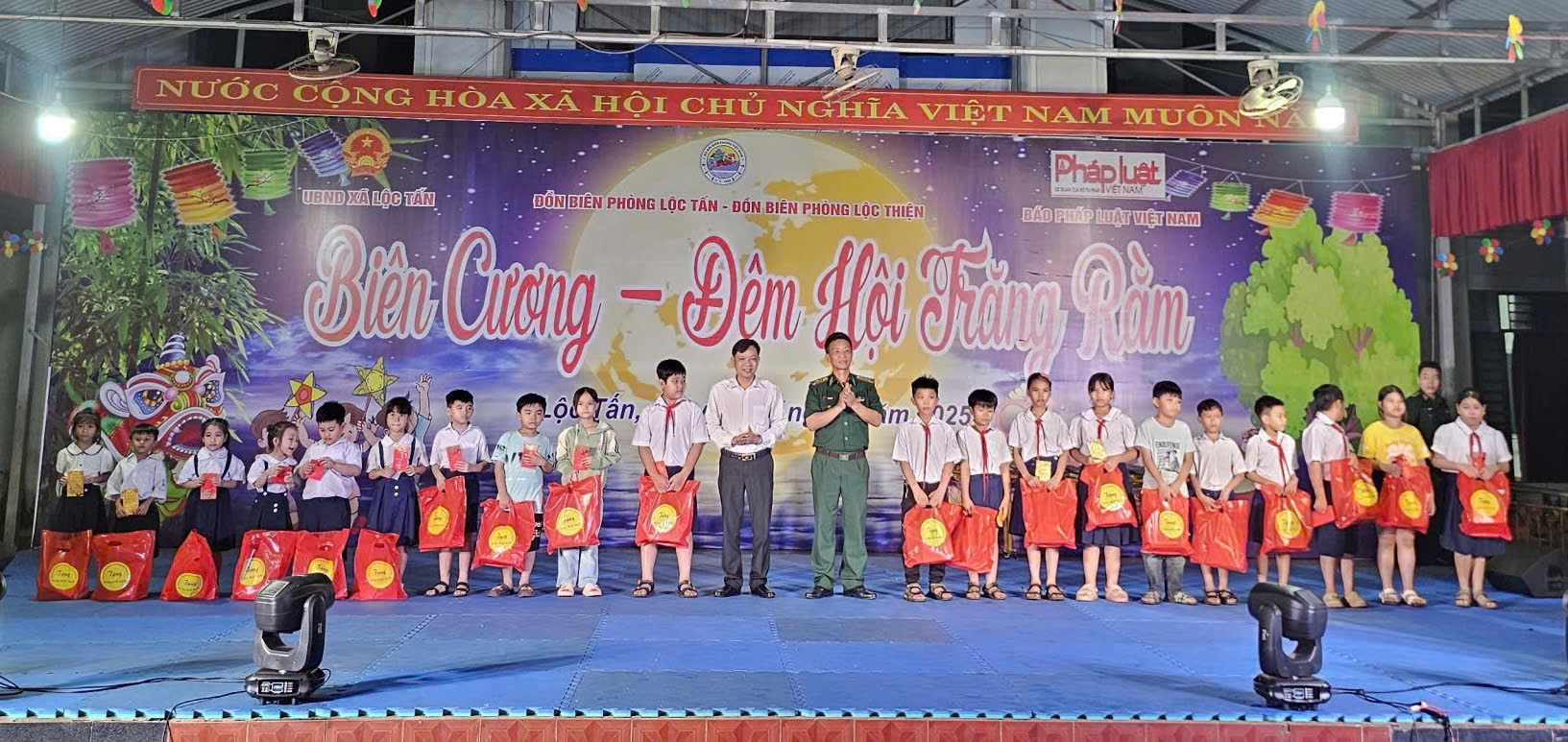 Tối ngày 03/10/2025, UBND xã Lộc Tấn phối hợp với Đồn Biên phòng Lộc Tấn, Đồn Biên phòng Lộc Thiện và Báo Pháp Luật Việt Nam tổ chức Chương trình “Biên cương - Đêm hội trăng rằm” cho các cháu thiếu niên, nhi đồng trên địa bàn xã Lộc Tấn.