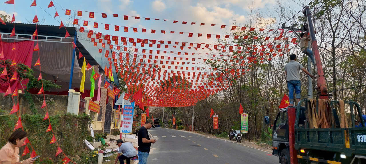 Công tác chỉnh trang cảnh quan tại trụ sở xã và các ấp trên địa bàn đang được thực hiện. Ảnh: Thúy Anh
