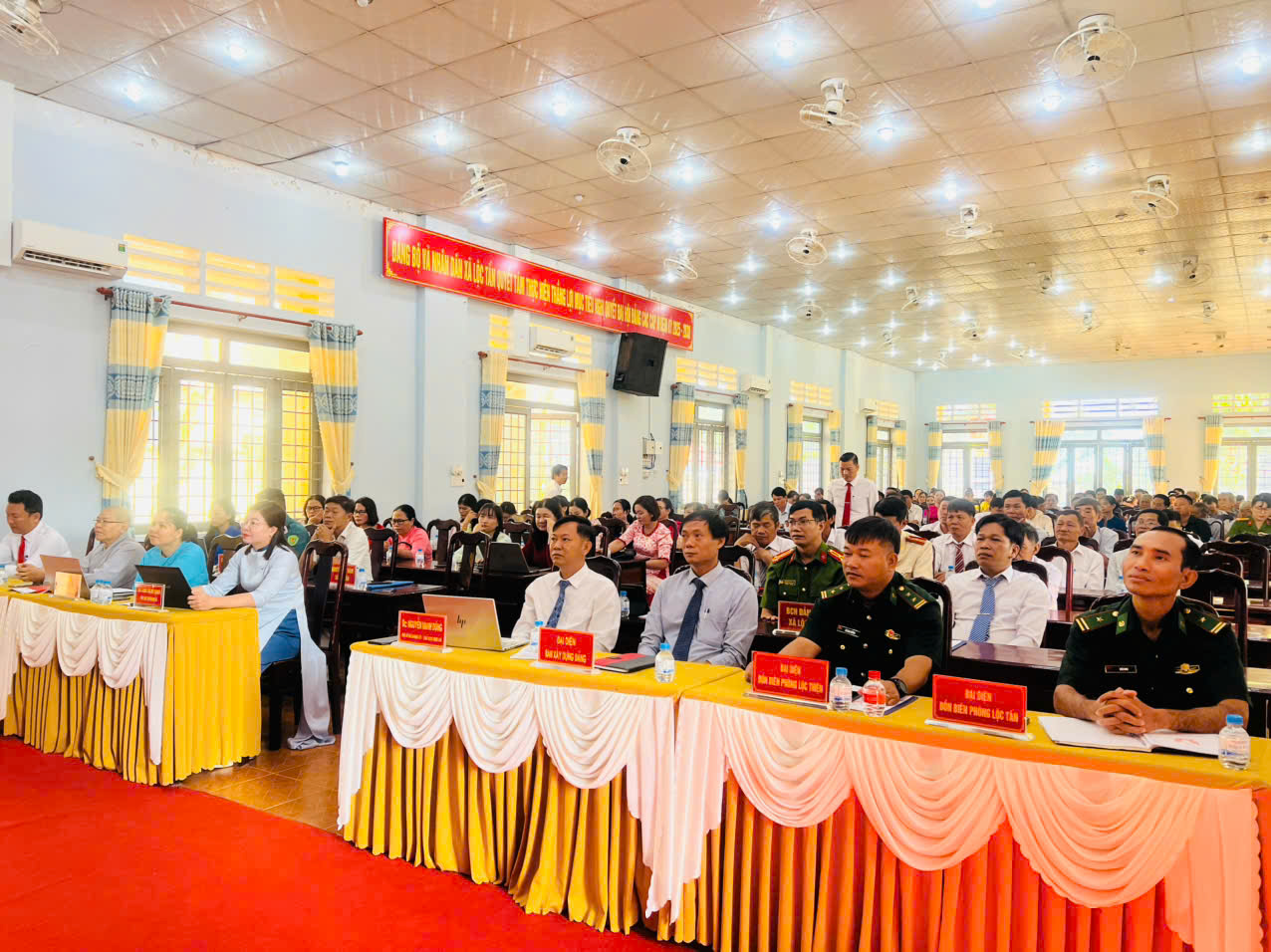 Tham dự hội nghị hôm nay có đồng chí Nguyễn Mạnh Dũng - Phó bí thư Đảng ủy, chủ tịch UBND xã - chủ tịch Hội đồng Thi đua - Khen thưởng xã, đồng chí Đinh Thị Mỹ Hạnh - UV.BTV Đảng ủy - Phó chủ tịch HĐND xã, các đồng chí trong Ban Thường vụ, Ban Chấp hành Đảng bộ xã, TT. UBMTTQVN xã, các đồng chí lãnh đạo đại diện đồn Biên Phòng Lộc Tấn, đồn Biên Phòng Lộc Thiện, lực lượng công an, quân sự, lãnh đạo các phòng, ban, ngành, đoàn thể xã, BGH các trường, bí thư các chi bộ, Trưởng ấp, trưởng Ban CTMT các ấp trực thuộc UBND xã.