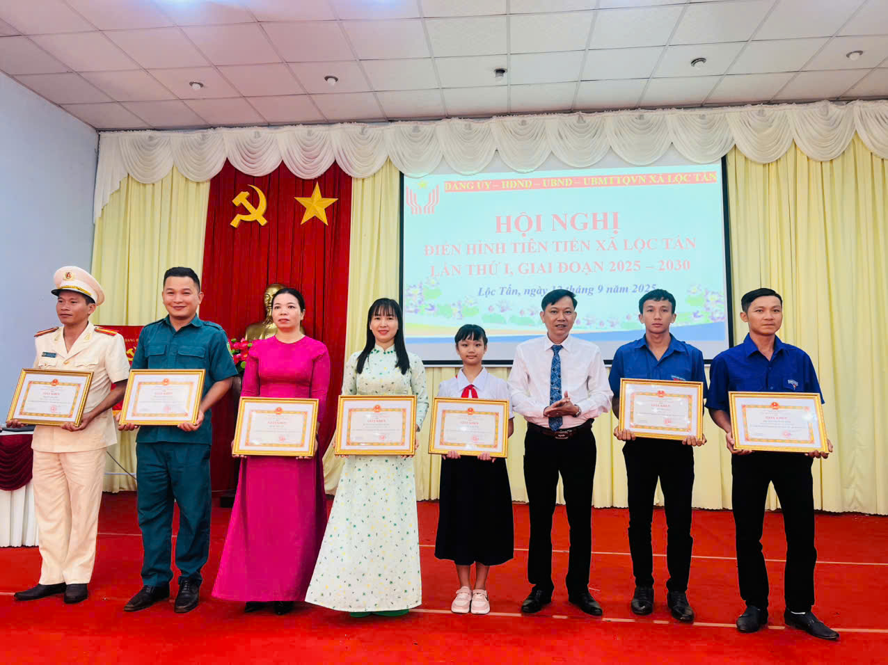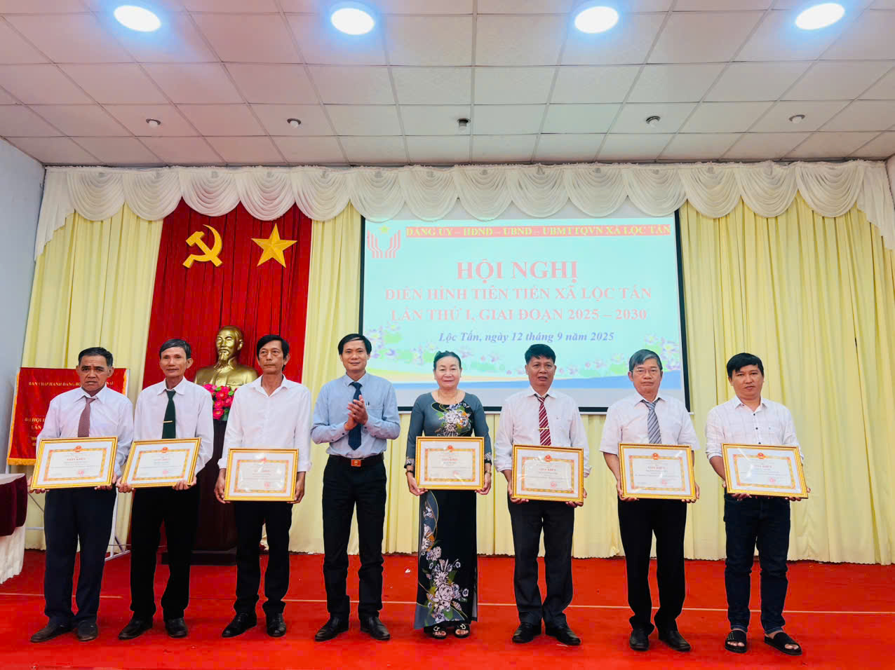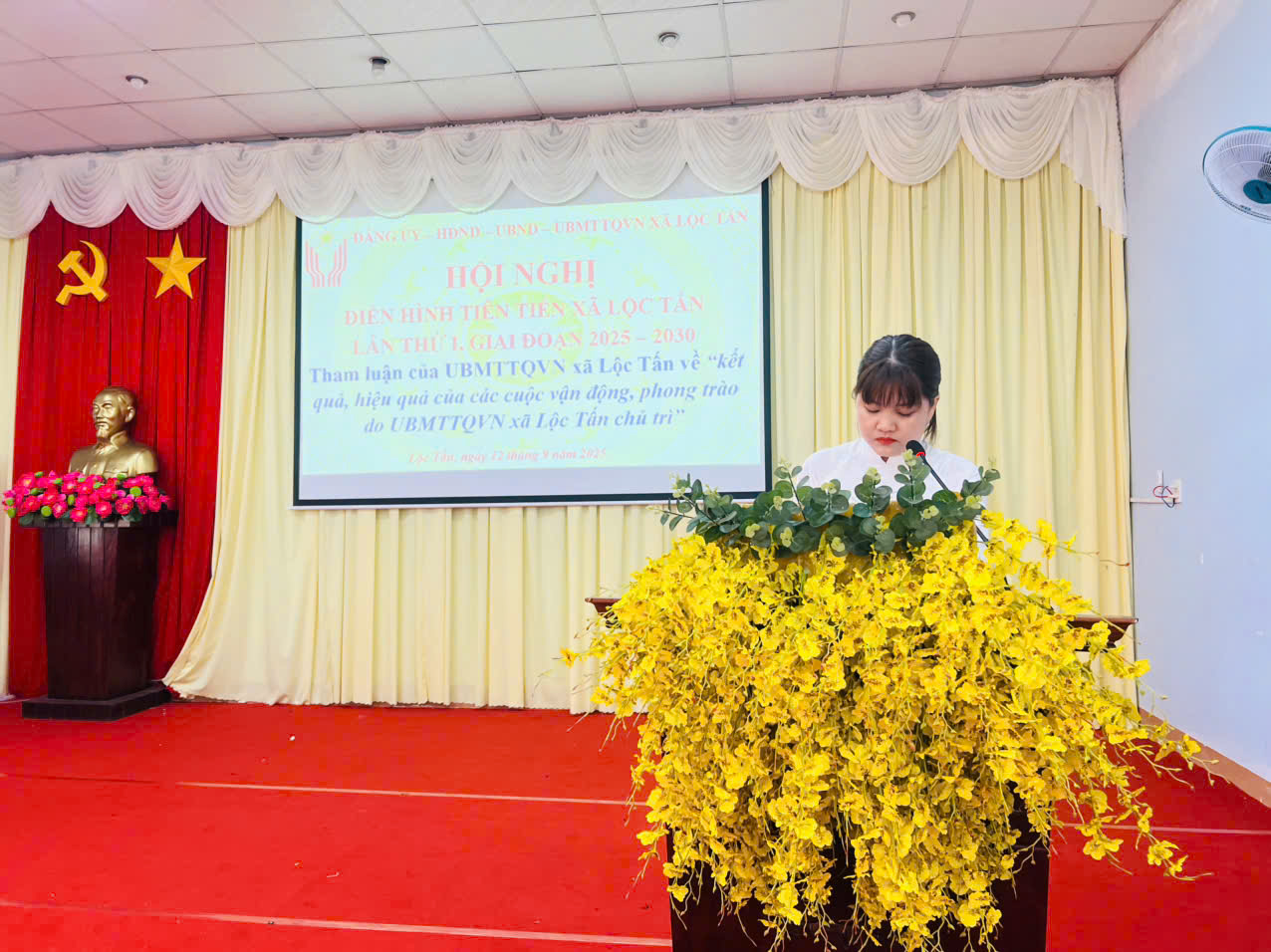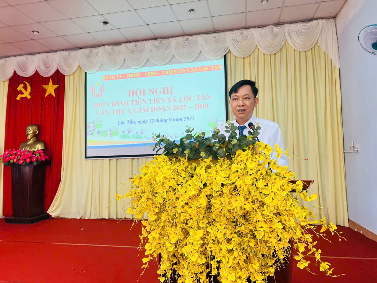 Sáng ngày 12/9/2025, tại Hội trường UBND xã Lộc Tấn đã diễn ra Hội nghị điển hình tiên tiến xã Lộc Tấn lần thứ I, giai đoạn 2025 - 2030. Đây là sự kiện chính trị quan trọng nhằm tổng kết, biểu dương, tôn vinh các tập thể, cá nhân tiêu biểu trong phong trào thi đua yêu nước giai đoạn 2020 - 2025; đồng thời phát động phong trào thi đua mới, tạo khí thế sôi nổi hướng tới Đại hội Thi đua yêu nước tỉnh Đồng Nai lần thứ VII và Đại hội Thi đua yêu nước toàn quốc lần thứ XI năm 2025.