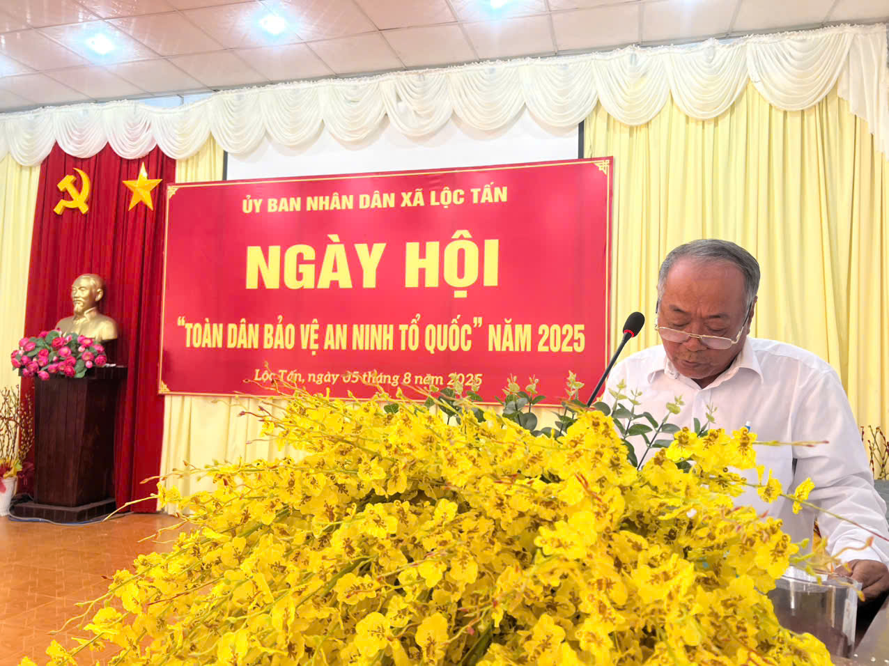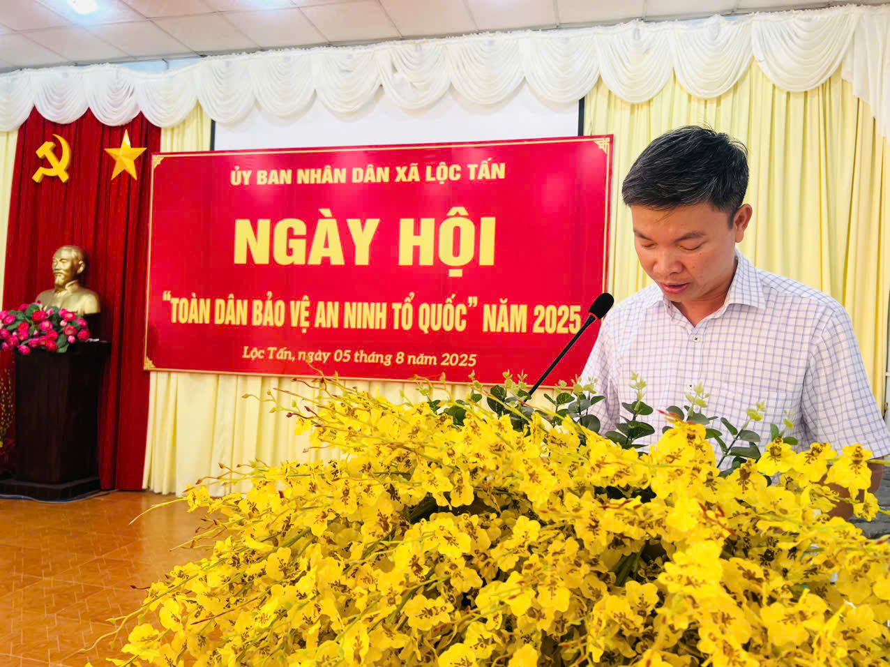 Hòa chung không khí thi đua sôi nổi chào mừng 80 năm ngày Cách mạng Tháng Tám, Quốc khánh 2/9, 80 năm Ngày truyền thống lực lượng Công an nhân dân và 20 năm Ngày hội Toàn dân bảo vệ An ninh Tổ quốc, sáng ngày 05/8/2025, ủy ban nhân dân xã Lộc Tấn đã long trọng tổ chức Ngày hội “Toàn dân bảo vệ An ninh Tổ quốc” năm 2025.