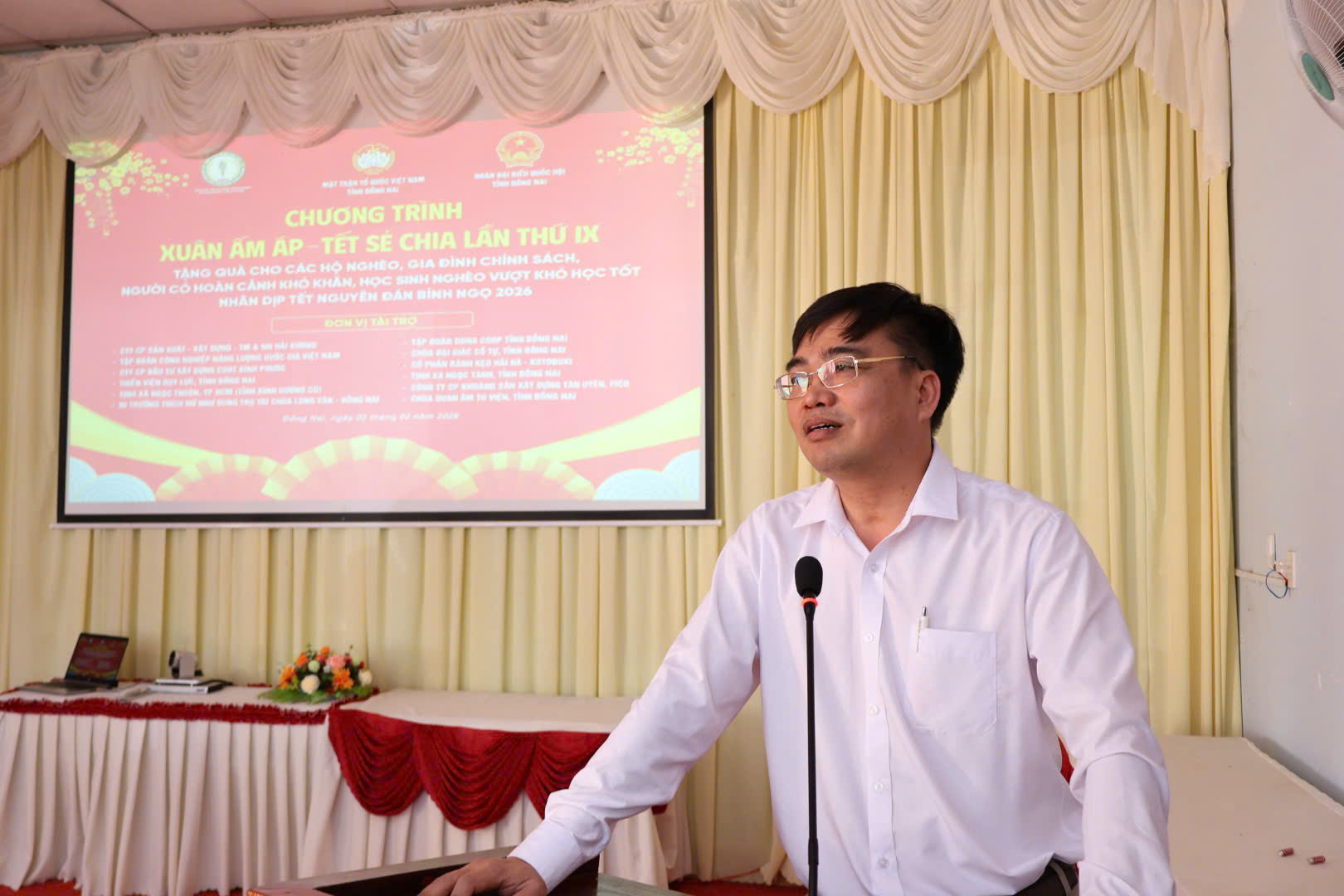 Toàn cảnh buổi trao quà. Ảnh: Thúy AnhTham dự chương trình có ông Nguyễn Tuấn Anh - Đại biểu Quốc hội khóa XV - Trưởng ban tổ chức; nhà báo Lê Thị Tuyết Hà - Chủ tịch Hội đồng Khoa học Viện Phát triển văn hóa và Chăm sóc sức khỏe cộng đồng; đại diện văn phòng đoàn Đại biểu Quốc hội, Ủy ban MTTQ Việt Nam tỉnh; đại diện các tổ chức, đơn vị tài trợ; cùng lãnh đạo Đảng ủy, HĐND, UBND, Ủy ban MTTQ Việt Nam xã Lộc Tấn.