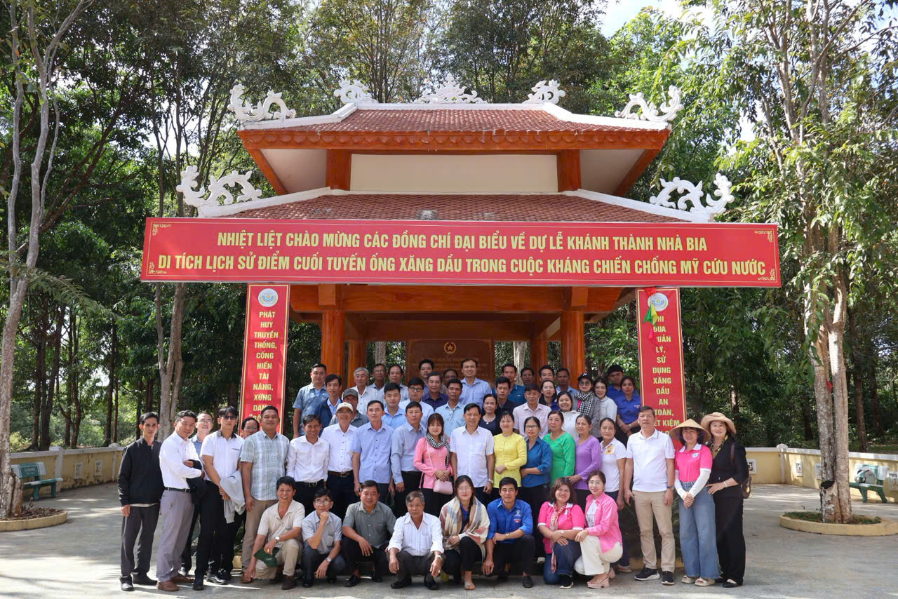 Đoàn công tác viếng nhà bia Di tích lịch sử kháng chiến Điểm cuối tuyến đường ống dẫn xăng dầu VK96 - Di tích Quốc gia đặc biệt. Ảnh: Thúy Anh