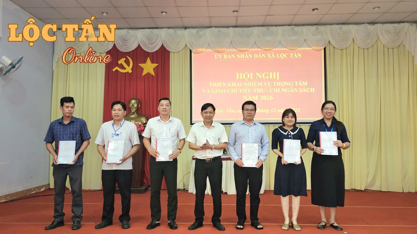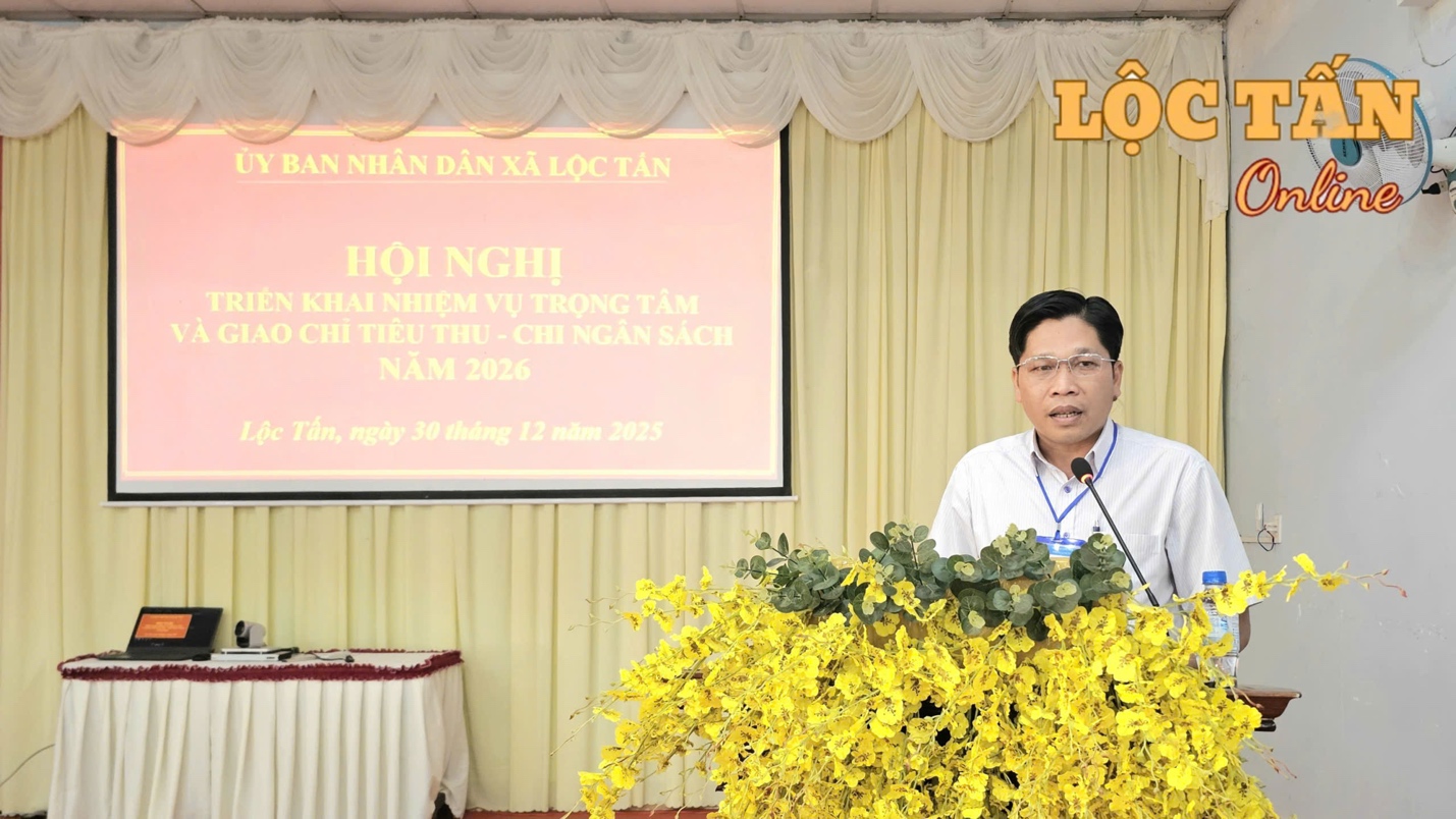 Chiều ngày 30/12/2025, UBND xã Lộc Tấn tổ chức Hội nghị triển khai nhiệm vụ trọng tâm và giao chỉ tiêu thu - chi ngân sách năm 2026.
