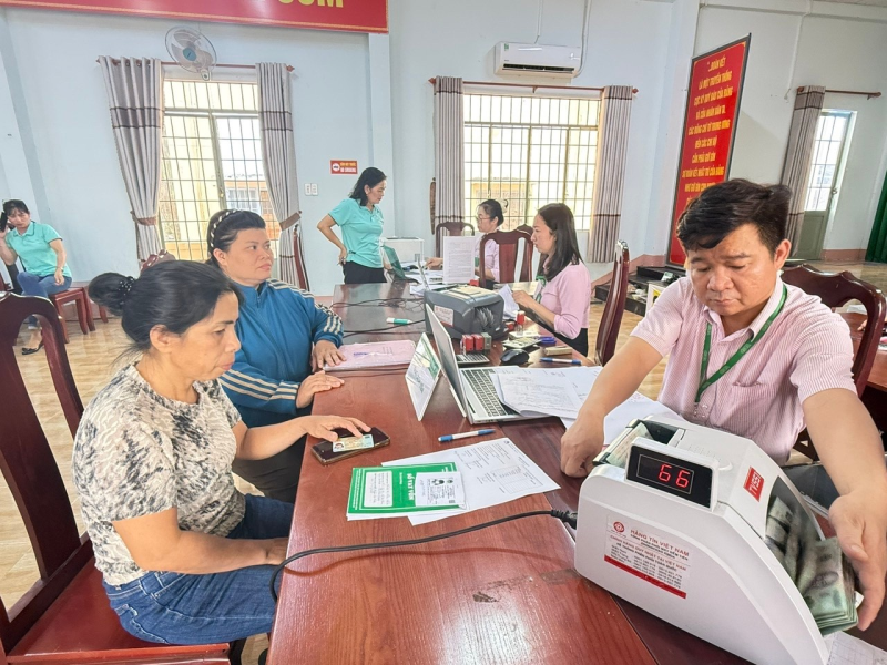 Bà Đặng Thị Diệu Hiền (bìa trái, ngụ ấp 11B, xã Lộc Tấn) tại buổi giải ngân vốn vay học sinh, sinh viên tại điểm giao dịch Lộc Thiện ngày 19/9/2025