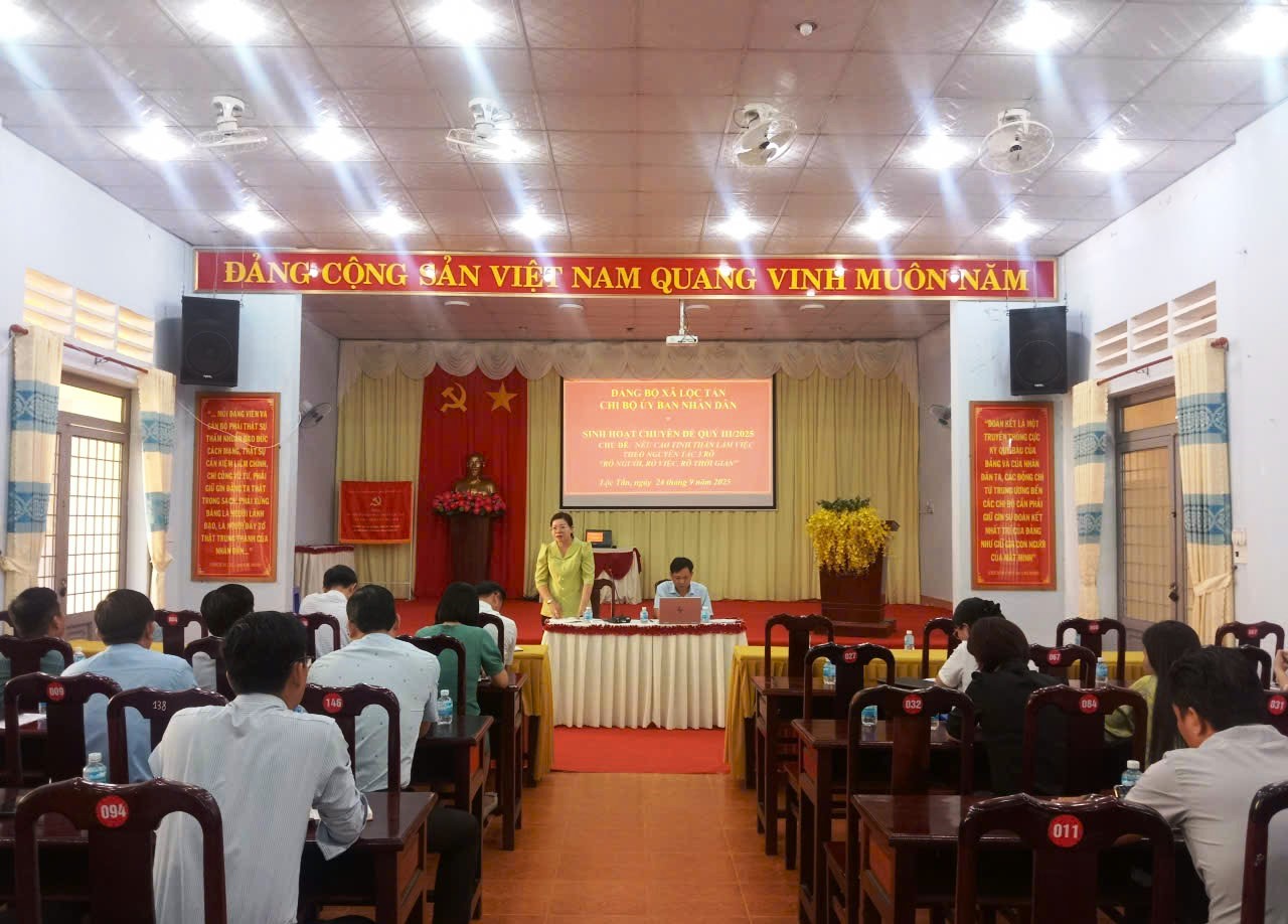 Nêu cao tinh thần làm việc theo nguyên tắc 3 rõ: “rõ người, rõ việc, rõ thời gian”, là chủ đề sinh hoạt chuyên đề quý III năm 2025 của Chi bộ Ủy ban nhân dân chiều ngày 24/9/2025 tại hội trường UBND xã Lộc Tấn.