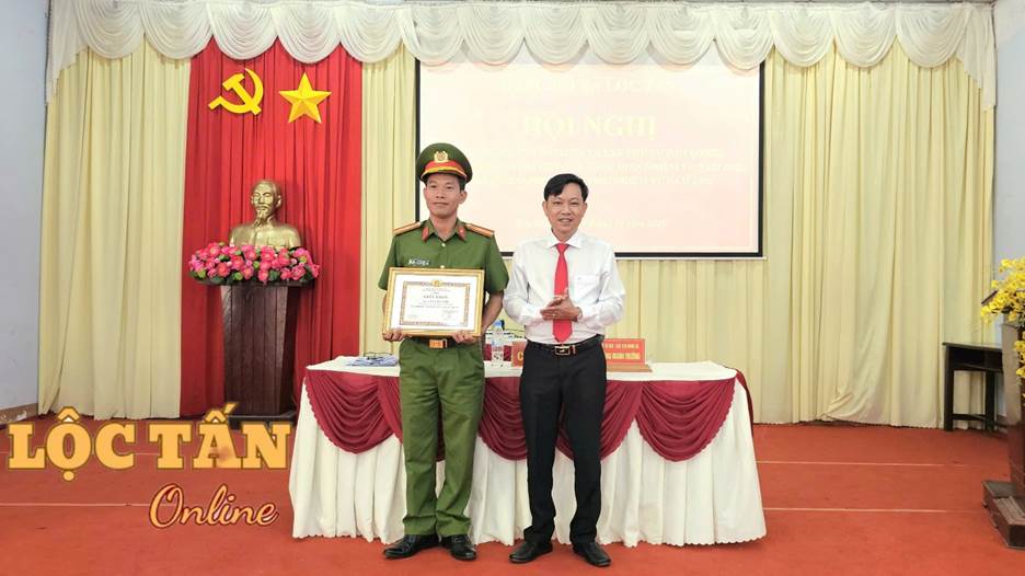 Tại hội nghị Đồng chí Hoàng Mạnh Thường - Bí thư Đảng ủy - Chủ tịch HĐND xã; Đồng chí Nguyễn Mạnh Dũng - Phó bí thư - Chủ tịch UBND xã đã trao tặng giấy khen và phần thưởng cho 5 tập thể đạt thành tích “ Hoàn thành xuất sắc nhiệm vụ” và Đồng chí Lê Văn Linh – Chi uỷ viên chi bộ - Phó Công an xã Lộc Tấn “Hoàn thành xuất sắc nhiệm vụ” 5 năm liền từ 2021-2025.