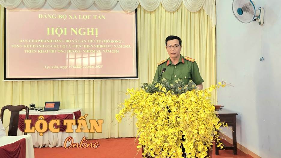 Sáng ngày 19/12. Đảng bộ xã Lộc Tấn tổng kết đánh giá kết quả thực hiện nhiệm vụ năm 2025, triển khai phương hướng nhiệm vụ năm 2026