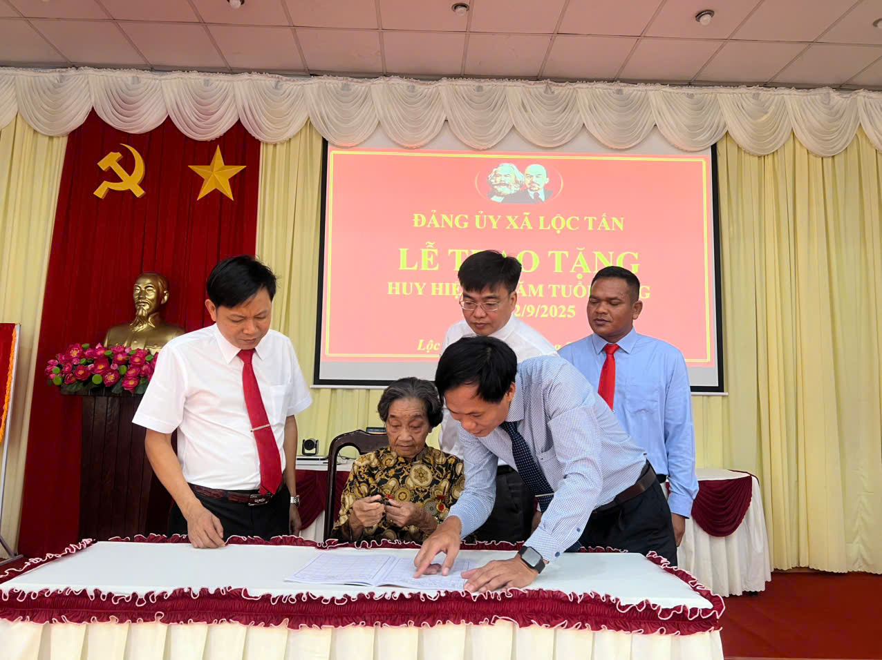 Sáng ngày 28/8/2025, Đảng ủy xã Lộc Tấn đã long trọng tổ chức Lễ trao tặng Huy hiệu 60 năm tuổi Đảng đợt 2/9/2025 cho đồng chí Đỗ Thị Nghĩa, đảng viên đang sinh hoạt tại chi bộ ấp 6A, trực thuộc Đảng bộ xã Lộc Tấn. Đây là phần thưởng cao quý của Đảng nhằm ghi nhận, tri ân những cống hiến to lớn, bền bỉ của đồng chí đối với sự nghiệp cách mạng qua nhiều thời kỳ.