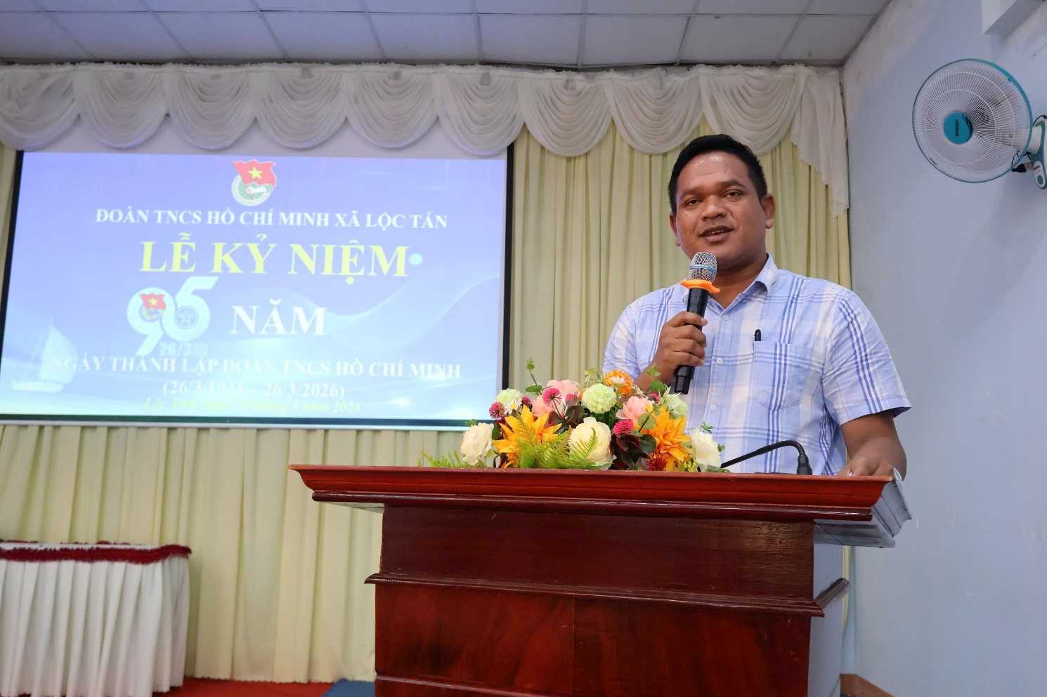 Chiều ngày 24/3/2026, Ban Thường vụ Đoàn Thanh niên xã Lộc Tấn long trọng tổ chức Chương trình họp mặt kỷ niệm 95 năm Ngày thành lập Đoàn TNCS Hồ Chí Minh (26/3/1931 - 26/3/2026) và tuyên dương đoàn viên tiêu biểu trong Tháng thanh niên năm 2026.