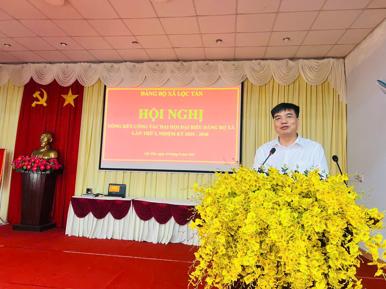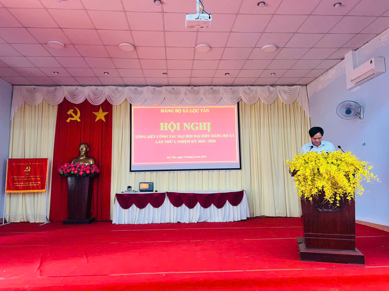 Tại Hội nghị, đại biểu đã được nghe báo cáo tổng kết công tác chuẩn bị, tổ chức và điều hành Đại hội. Báo cáo khẳng định: Đại hội Đảng bộ xã Lộc Tấn lần thứ I đã thành công tốt đẹp, đảm bảo nghiêm túc, đúng quy định, để lại nhiều dấu ấn trong công tác điều hành, tạo khí thế thi đua sôi nổi trong toàn Đảng bộ và Nhân dân. Bên cạnh những kết quả đạt được, Hội nghị cũng thẳng thắn chỉ ra một số hạn chế trong quá trình tổ chức để rút ra bài học kinh nghiệm cho những lần sau.