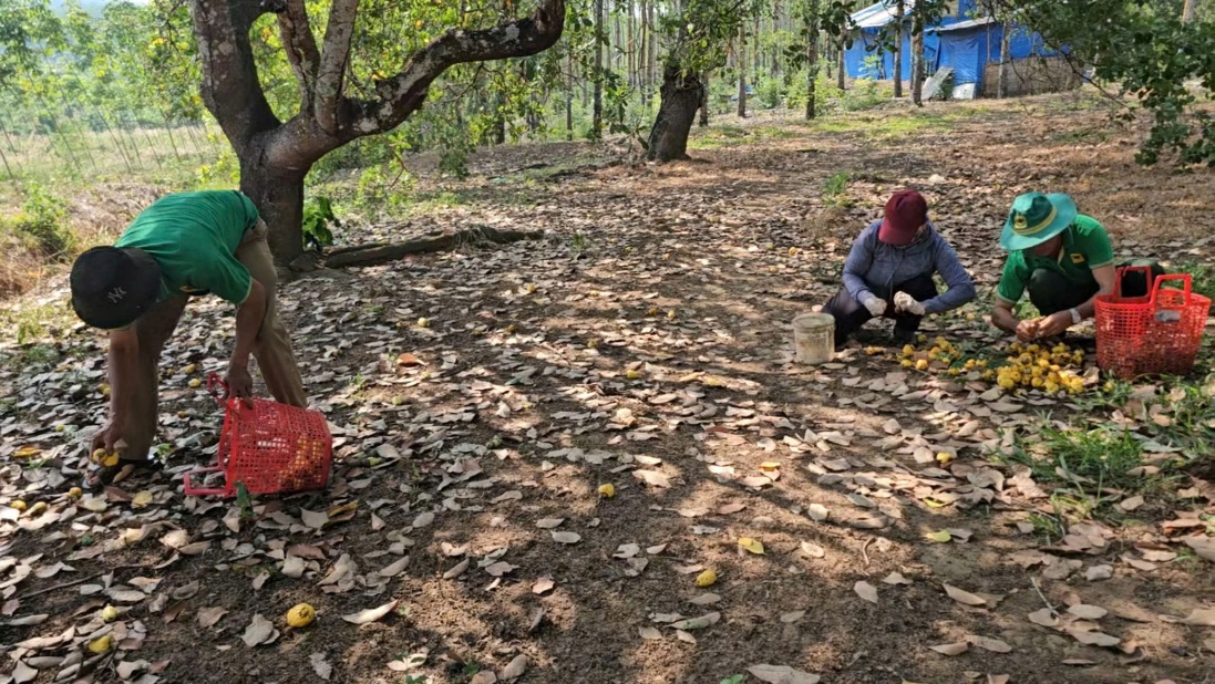 Điểm nhấn nổi bật của hội thi là phần thi nhặt điều trong thời gian 30 phút. Trong khoảng thời gian giới hạn này, các đội thi đã thể hiện sự phối hợp nhịp nhàng, nhanh nhẹn và kinh nghiệm dày dặn trong từng động tác, từ cách phân công, quan sát đến thu gom hạt điều đạt chất lượng. Không chỉ là cuộc tranh tài về tốc độ và kỹ năng, phần thi còn phản ánh rõ nét tinh thần đoàn kết, hỗ trợ lẫn nhau – yếu tố then chốt trong sản xuất nông nghiệp.