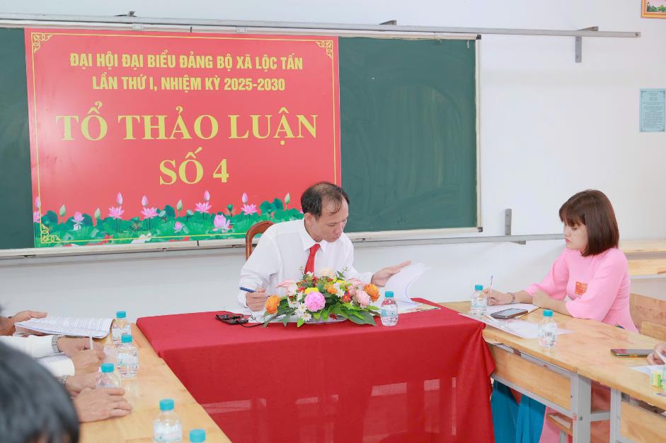 Ban Tổ chức Đại hội đã chia 05 Tổ đại biểu thực hiện việc thảo luận các nội dung của Đại hội. Mỗi tổ cử 01 Thư ký để ghi biên bản cuộc họp, kết quả 5 tổ thảo luận có tổng 39 đại biểu có ý kiến với 79 nội dung đóng góp. Mọi công tác đã sẵn sàng, với sự chuẩn bị chu đáo, bài bản và quyết tâm cao của cấp ủy, chính quyền, phiên Đại hội chính thức hứa hẹn sẽ là một khởi đầu đầy kỳ vọng, kết tinh trí tuệ, đoàn kết và khát vọng vươn lên của Đảng bộ và nhân dân xã Lộc Tấn.